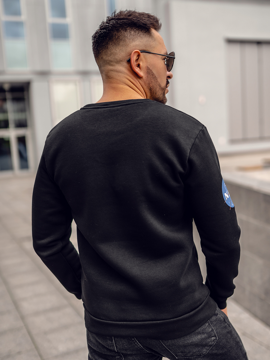 Черен мъжки суитшърт с принт и без качулка BOLF 146955A