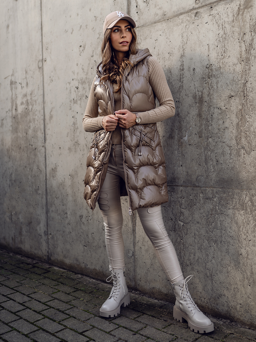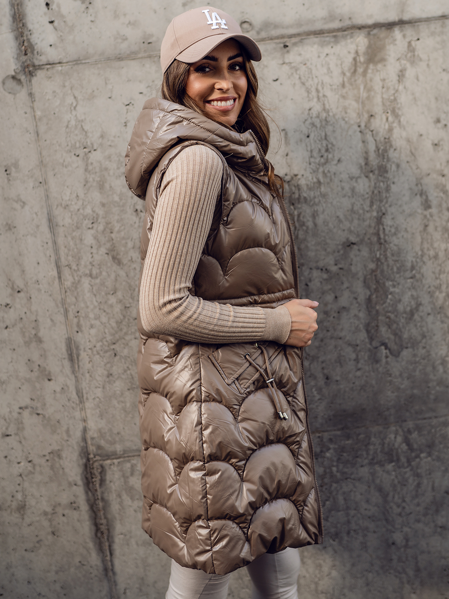 Отзиви и мнения на потребители за Кафяв дълъг капитониран дамски елек Bolf B8172A