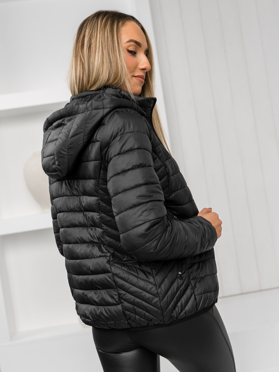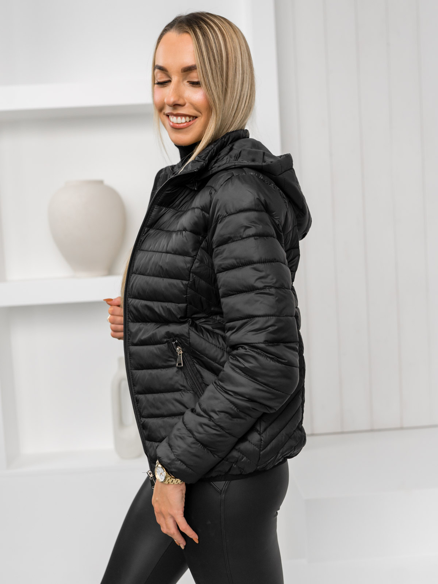 Черно капитонирано дамско преходно яке с качулка Bolf B0124A