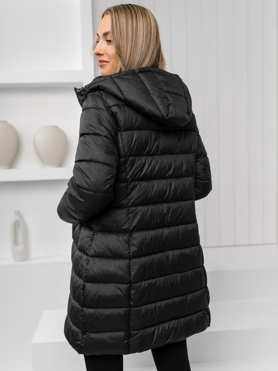 Дългото капитонирано дамско зимно яке с качулка 11Z8083 е изработено от издръжлива материя, които осигуряват защита от вятър, дъжд и сняг. Използването на висококачествени материи гарантира издръжливост и комфорт при носене. Капитонирането придава характер и помага за задържането на топлината. Качулката осигурява защита от вятър и дъжд. Качулката е регулируема, което ви позволява да я нагласите според вашите предпочитания. Подходящо е както за ежедневни, така и за малко по-официални поводи. Добре се съчетава с рокля или панталон.