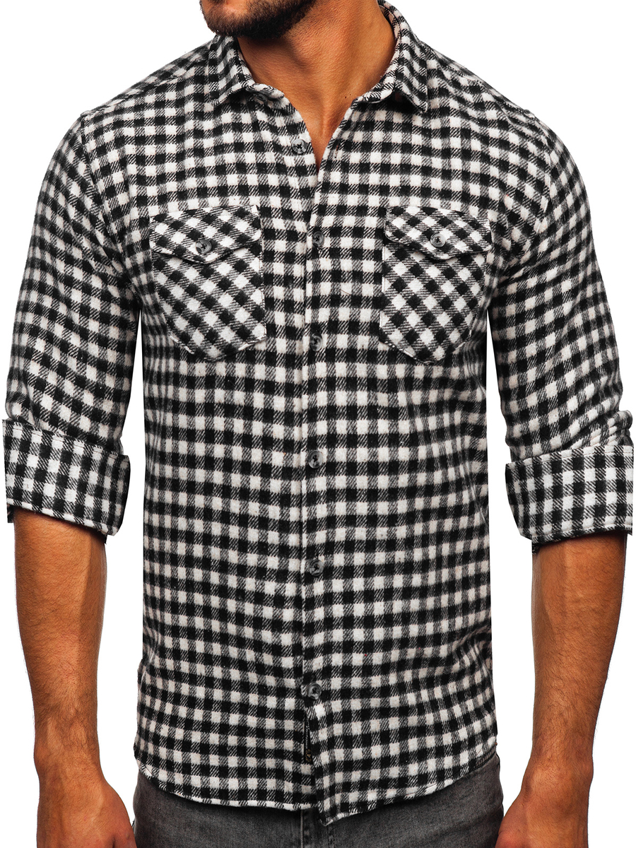Мъжката бархетна черно-бяла карирана риза с дълъг ръкав Bolf 22701 е абсолютно задължителна за всеки мъж, който цени елегантния стил. Този модел се предлага в три модерни цветови варианта. Карираната риза с дълъг ръкав се закопчава с копчета и има италианска яка "Hai"(разпъната). Регулируеми маншети, единични, скосени, с едно копче Продуктът е изработен от висококачествена материя, което го прави приятен на допир и изключително удобен. Идеална за всякакви поводи. Излизайки с приятели на ресторант или вечеряйки със семейството си - винаги ще изглеждате спретнати и елегантни. Създай своята елегантна визия, като съчетаеш ризата с панталони чино. Ако искате по-небрежен тоалет, изберете дънки и кожено яке!