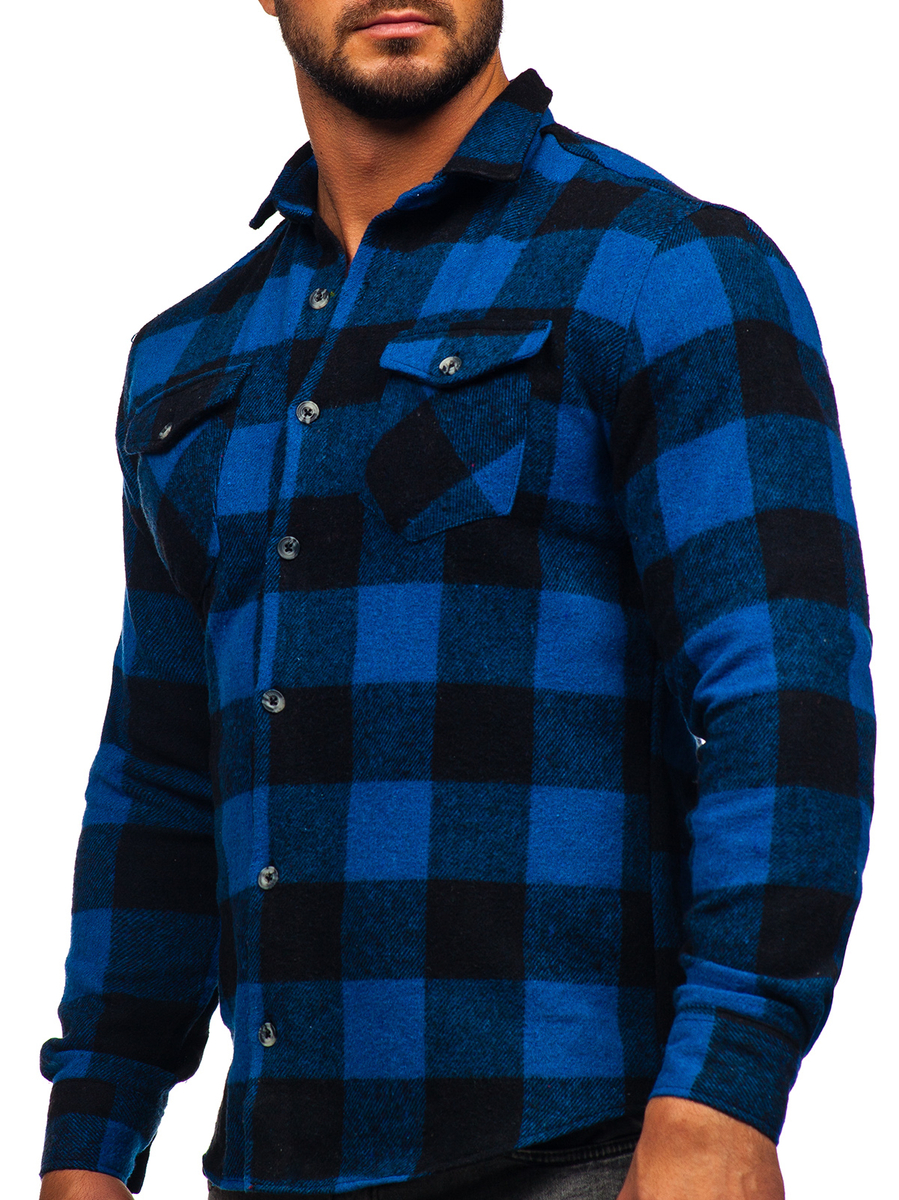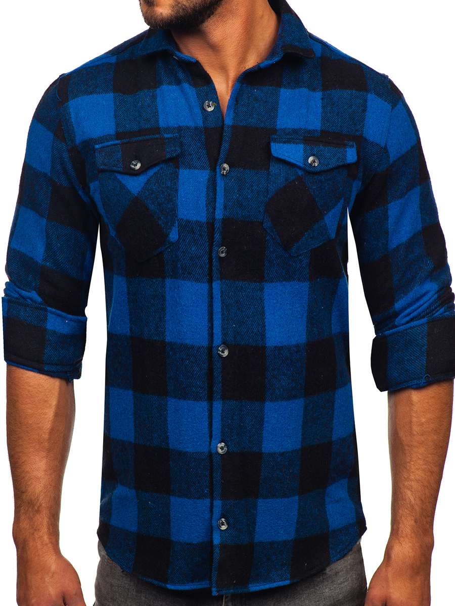 Отзиви и мнения на потребители за Тъмносиня бархетна мъжка риза с дълъг ръкав Bolf 20723