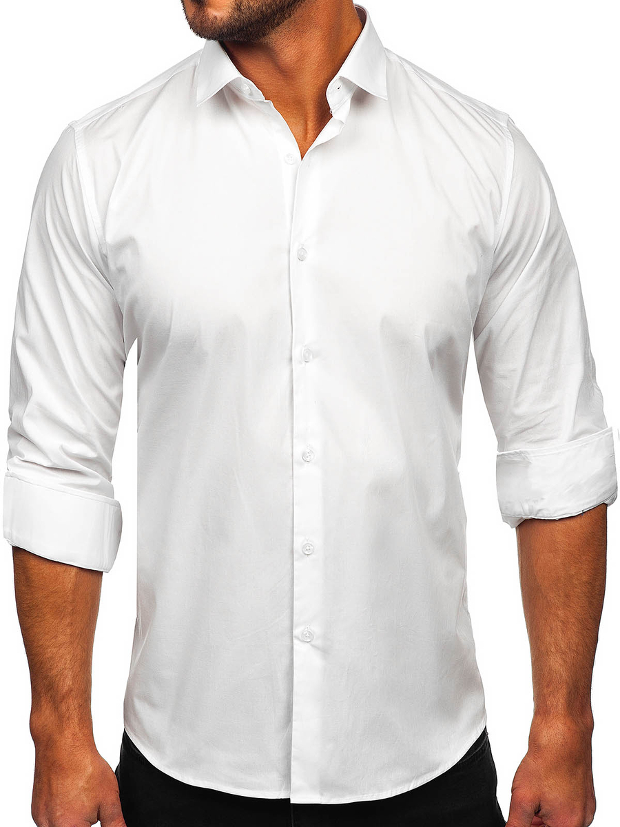 Бяла мъжка елегантна памучна риза с дълъг ръкав slim fit Bolf TSM13