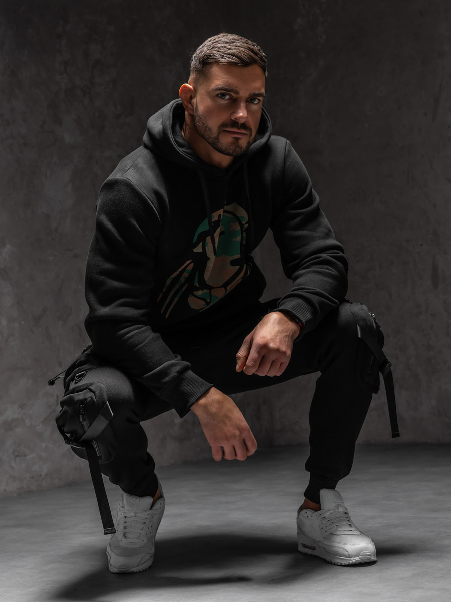 Черен суитшърт с качулка и принт Bolf 147048A