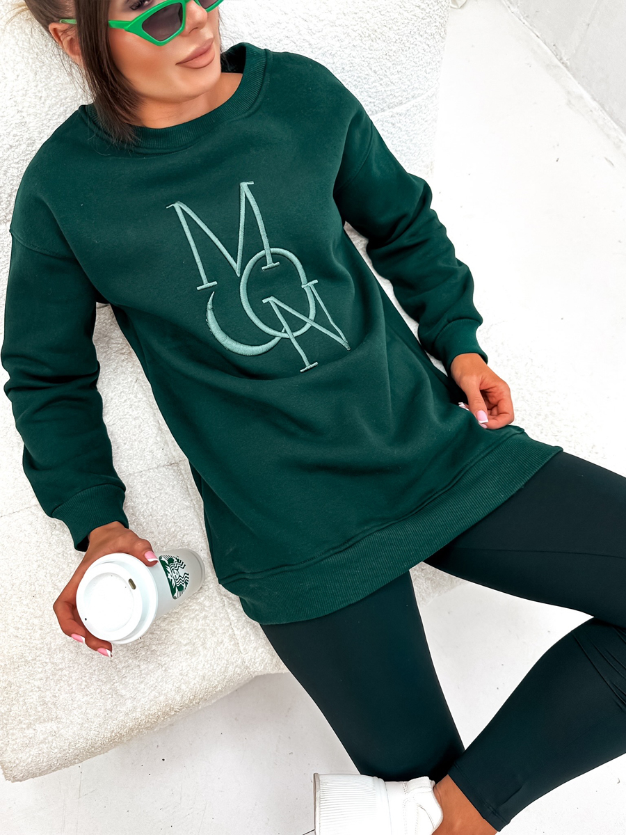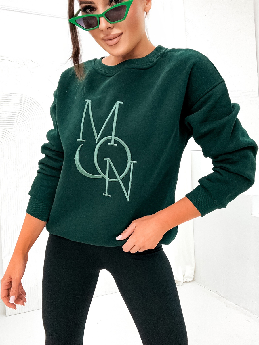 Отзиви и мнения на потребители за Дамски подплатен суитшърт без качулка с принт в цвят тюркоаз Bolf VE77