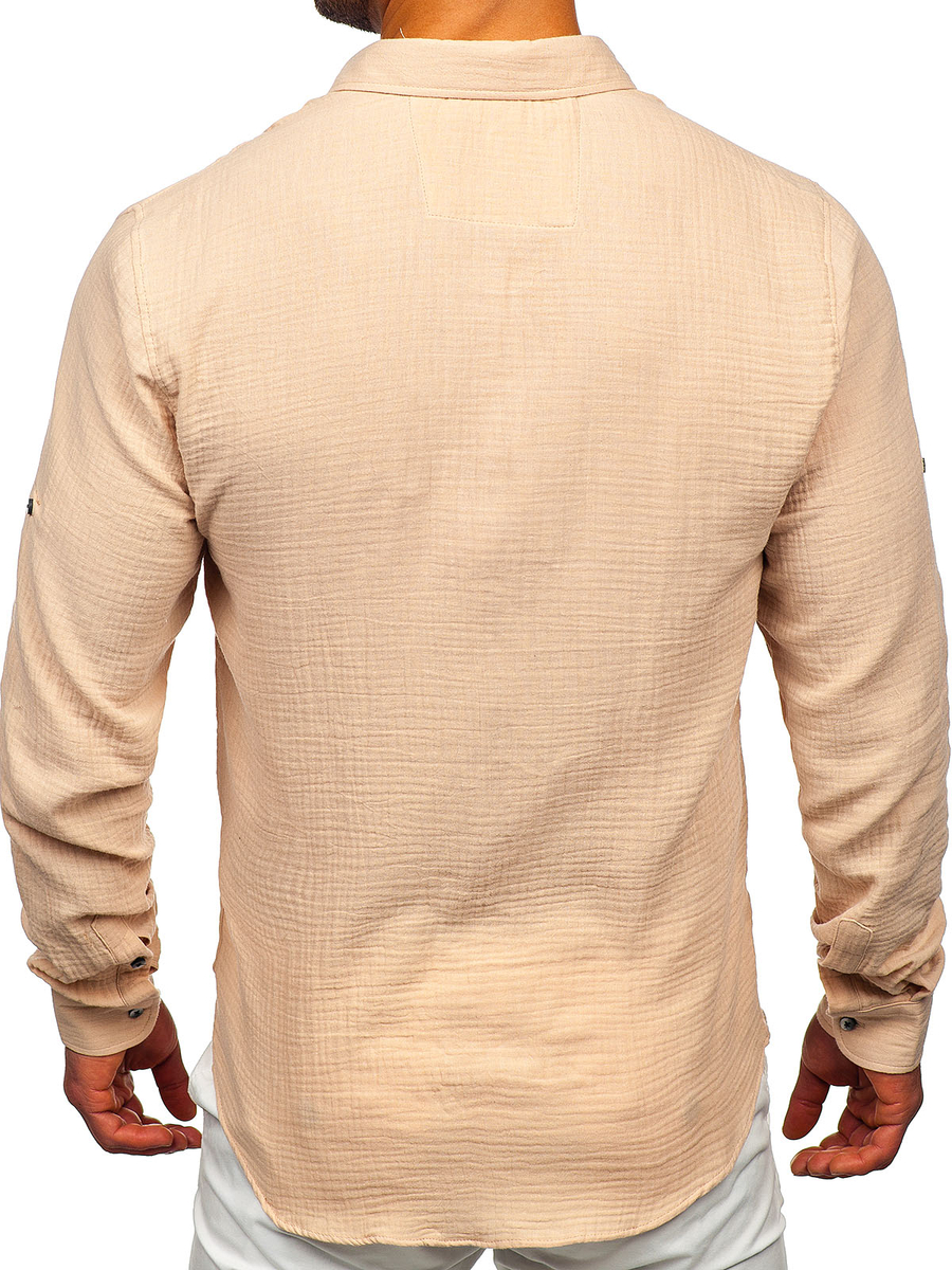 Отзиви и мнения на потребители за Бежова муселинена мъжка риза с дълъг ръкав Bolf 22746