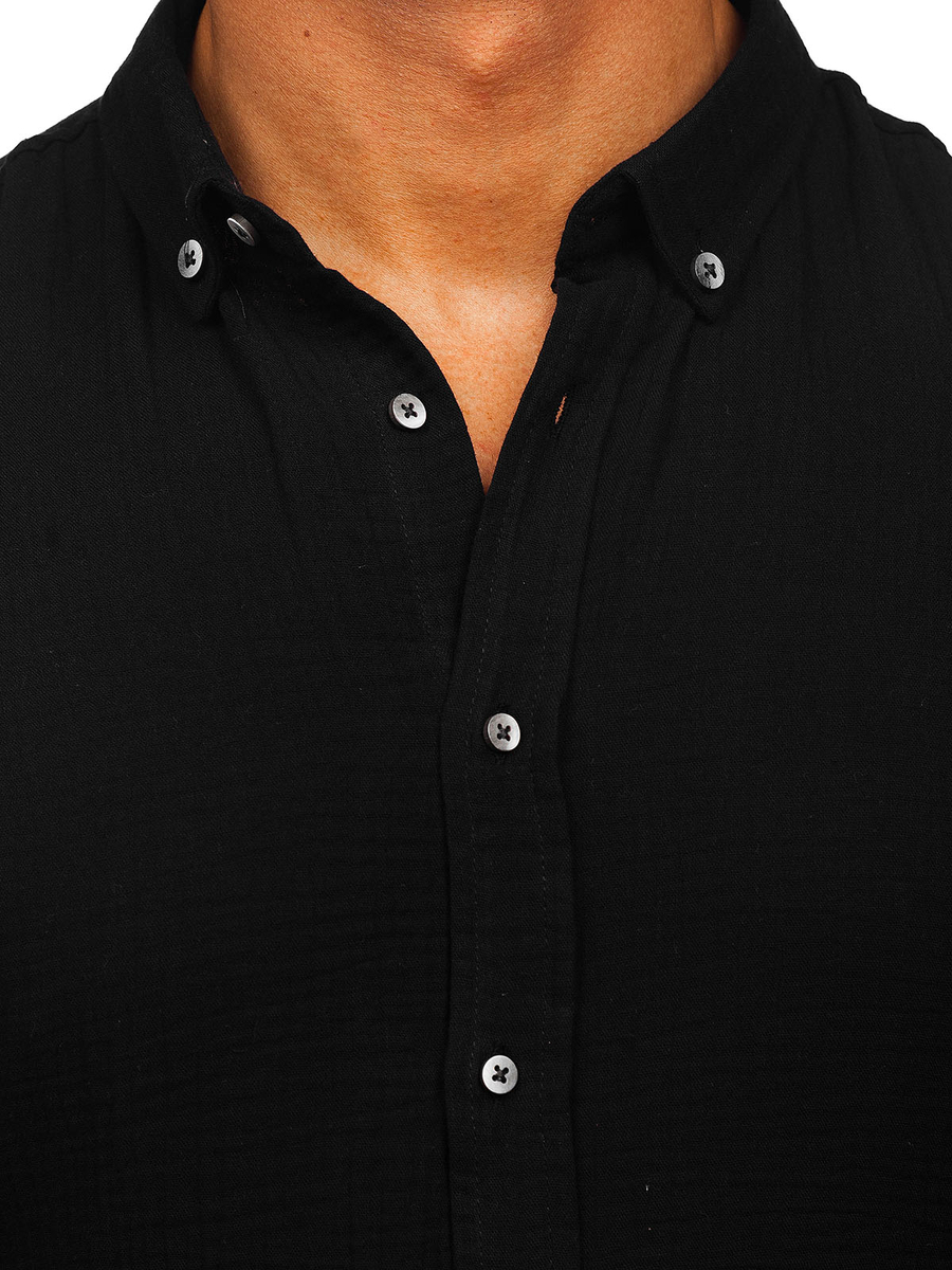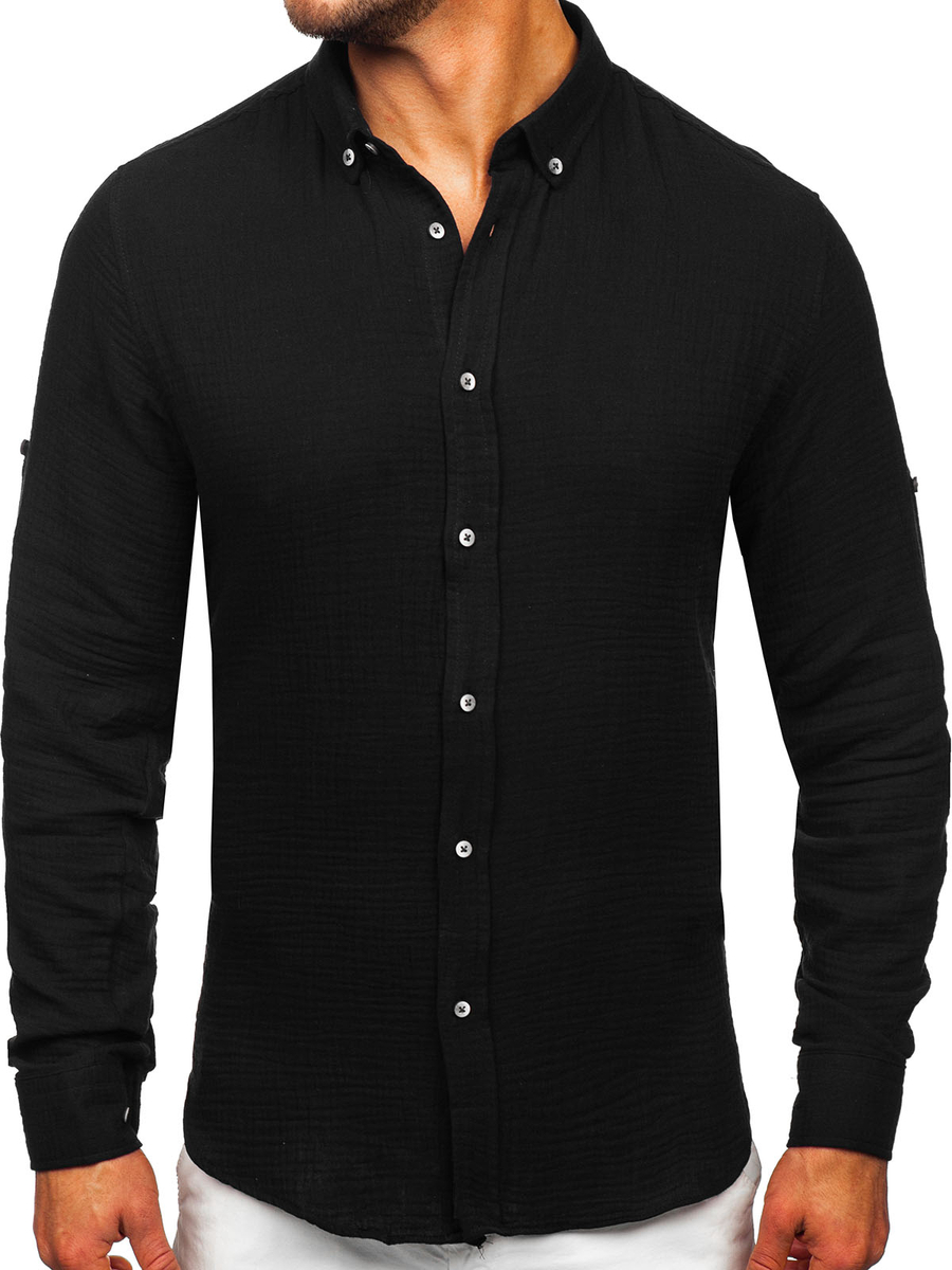 Отзиви и мнения на потребители за Черна муселинена мъжка риза с дълъг ръкав Bolf 22746