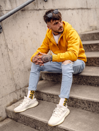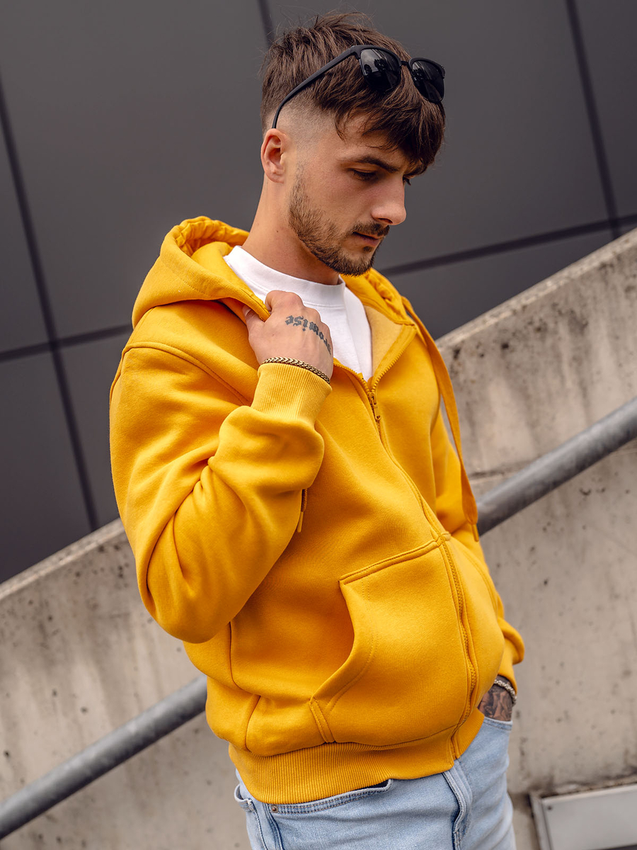 Мъжкият суитшърт с качулка в цвят камел Bolf 2008А се закопчава с цип . Това е класически суитшърт, изработен от мек, приятен на допир трикотаж. Продуктът се характеризира с много ярки цветове, в които се предлага. Има регулируема качулка в плътен цвят и странични джоба. Долният подгъв и ръкавите са завършени с ластичен маншет Суитшърът силно се препоръчва за феновете на минимализма и комфорта в модата. Ефектен и удобен. Те са задължителен елемент във всеки мъжки гардероб. Простият класически стил в интересни цветове прави този модел суитшърти идеален завършек на много ежедневни и street стилизации. Елегантният мъжки суитшърт с цип е предложение, което си струва да имате в гардероба си не в един, а дори в няколко цветови варианта. От класическото черно през сини и зелени нюанси до малко по-екстравагантни оранжеви, жълти или розови разцветки. Практичен суитшърт по всяко време на годината.