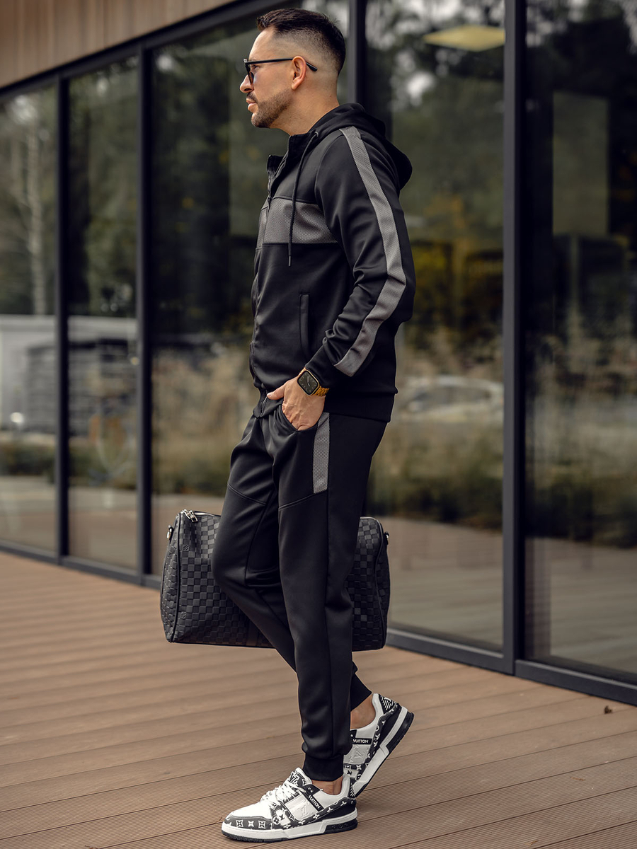 Отзиви и мнения на потребители за Черен мъжки анцуг с качулка и принт Bolf 8C8115