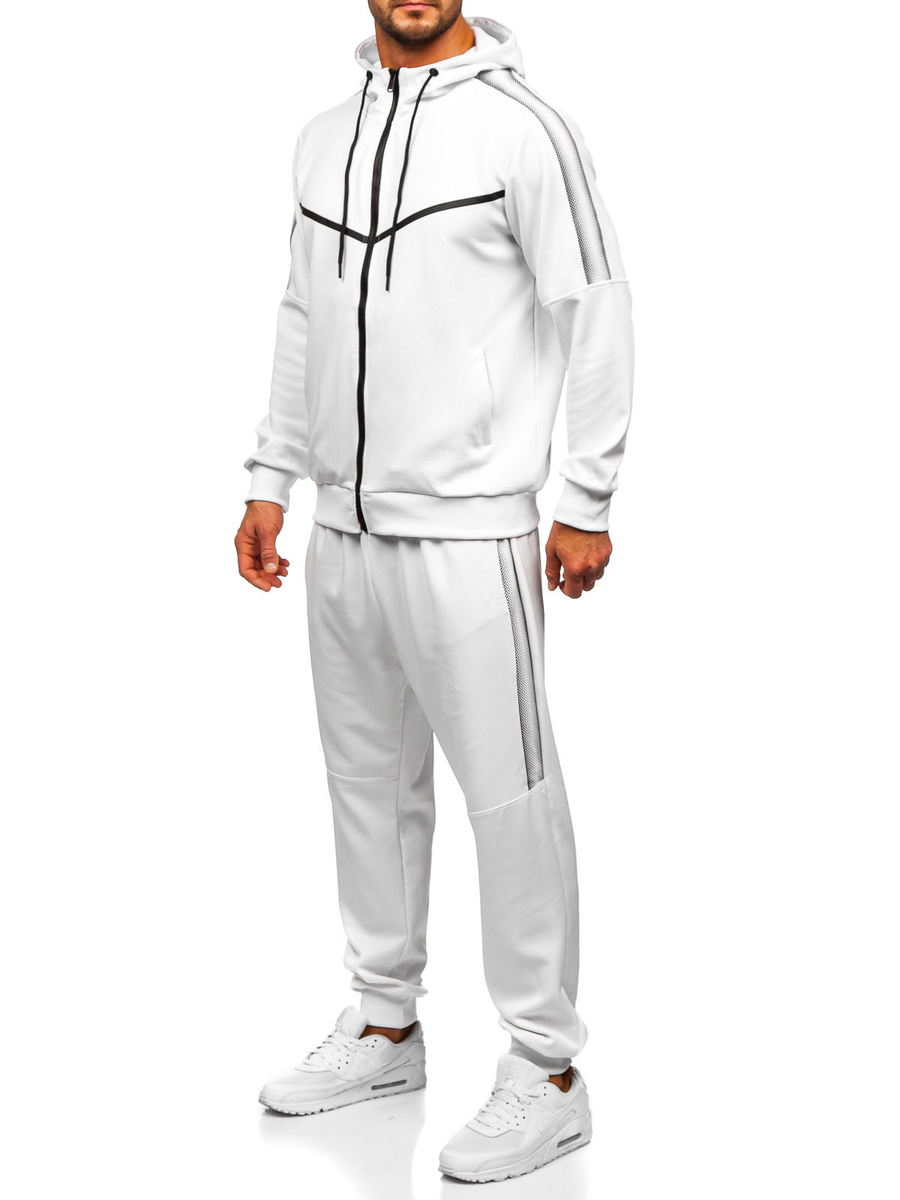 Бял мъжки анцуг с качулка и принт Bolf 8C8117