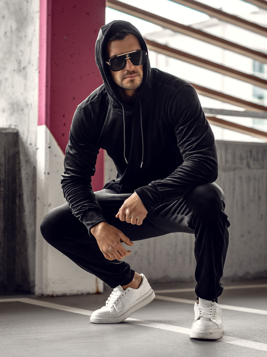 Отзиви и мнения на потребители за Черен плюшен мъжки анцуг с качулка Bolf 8C1171A