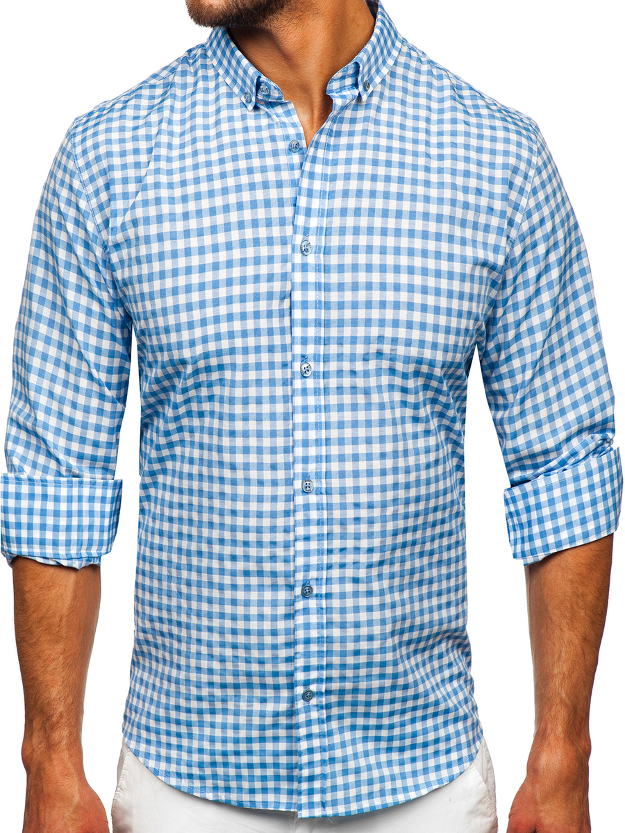 Отзиви и мнения на потребители за Синя мъжка карирана риза с дълъг ръкав Bolf 22747
