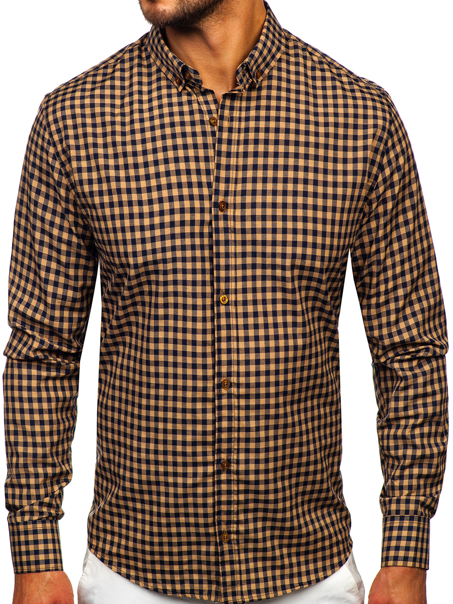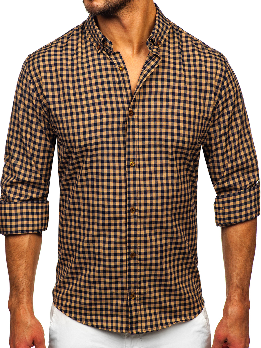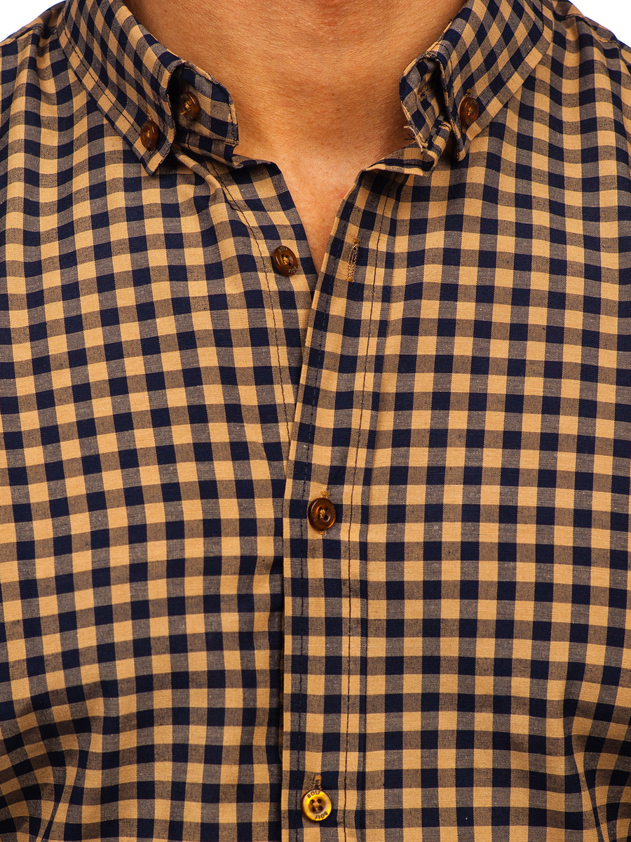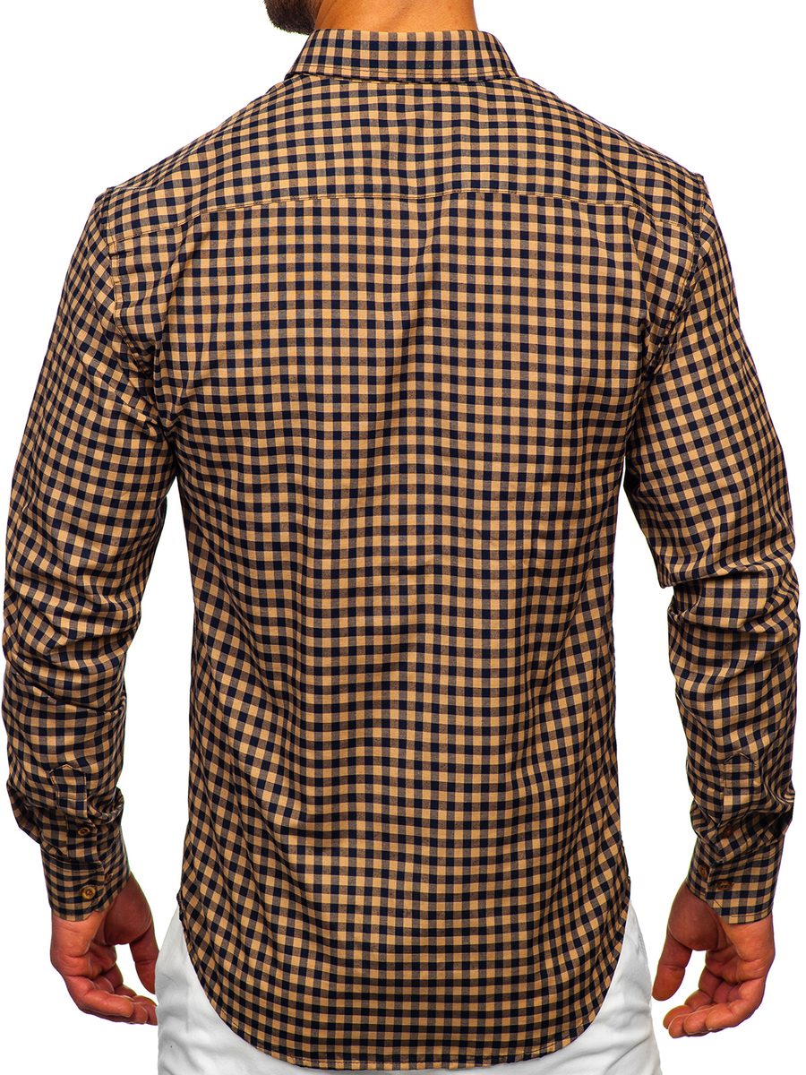 Кафява мъжка карирана риза с дълъг ръкав Bolf 22747