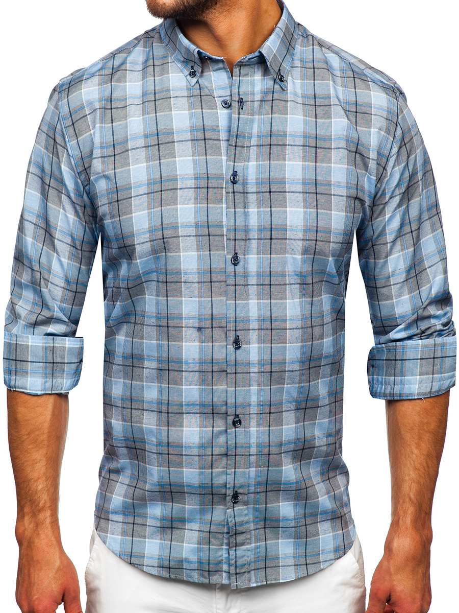 Отзиви и мнения на потребители за Синя мъжка карирана риза с дълъг ръкав Bolf 22748