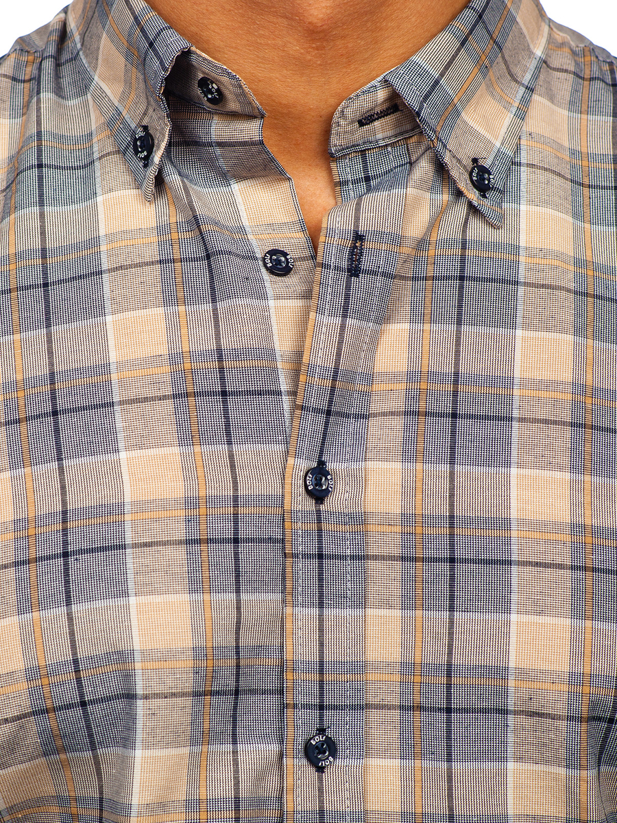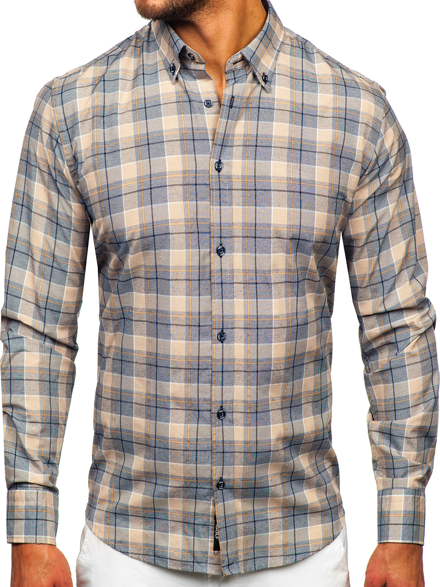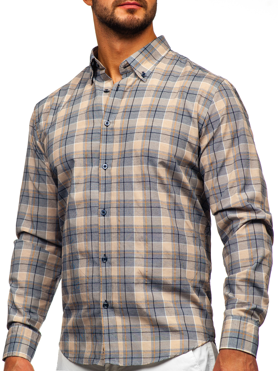Отзиви и мнения на потребители за Бежова мъжка карирана риза с дълъг ръкав Bolf 22748