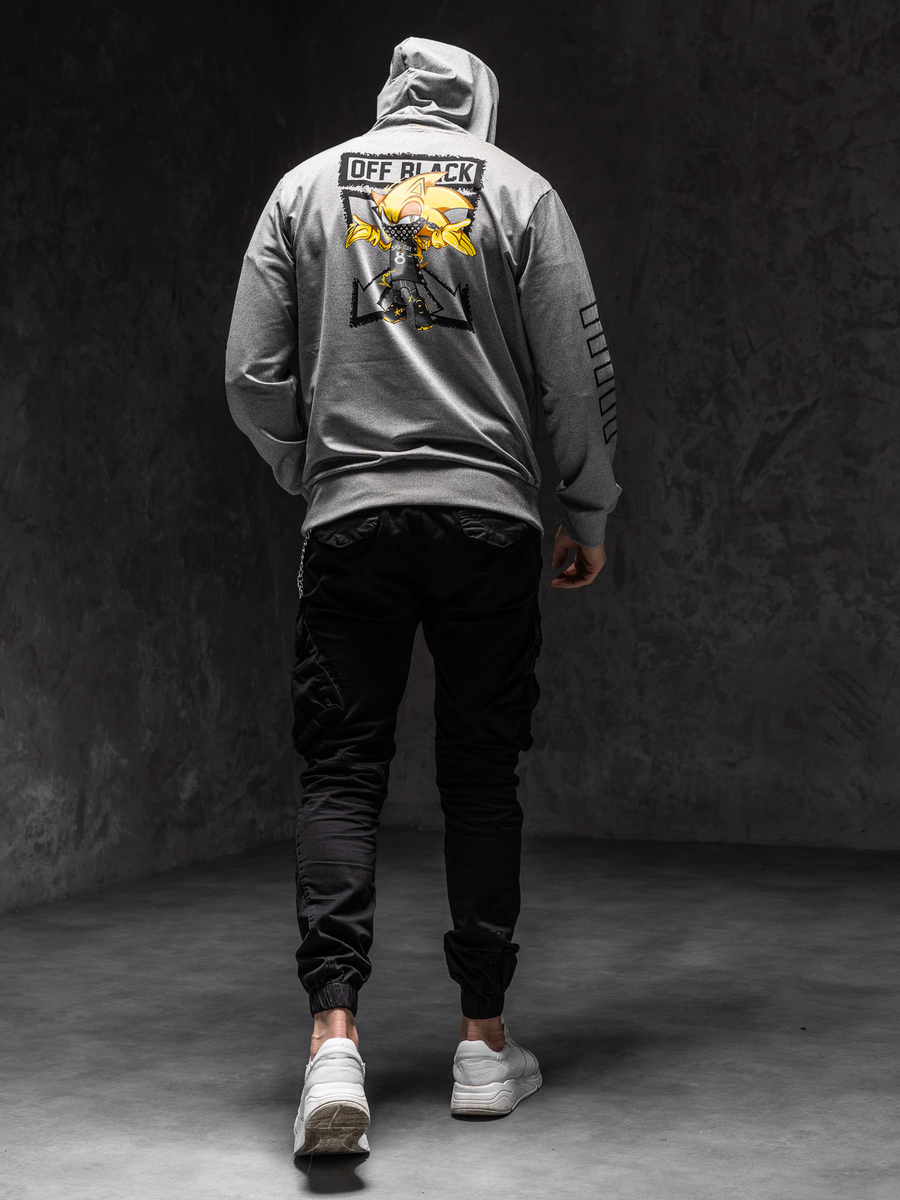 Сив мъжки суичър с щампа Bolf HM611A1 е задължителен продукт за всеки сезон. Суичърът има двуслойна качулка с възможност за регулиране чрез връзки, която ще ви предпази от вятър и дъжд. Ръкавите и долната част са завършени с маншет, което прави суитшърта идеално прилепнал към фигурата. Практичен елемент е джобът тип "кенгуру". Продуктът е изработен от приятна на допир и издръжлива на употреба материя. Декоративната щампа отпред и отзад му придава уникален характер. Добре се съчетава с дънки, анцуг, карго панталони и дори с панталони чино. Можете смело да го съчетаете с t-shirt, дънково или кожено яке.