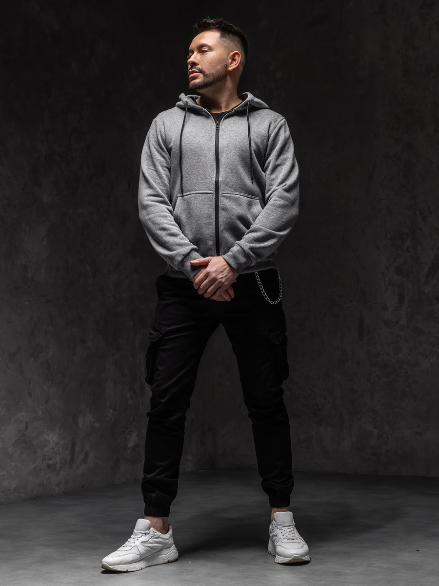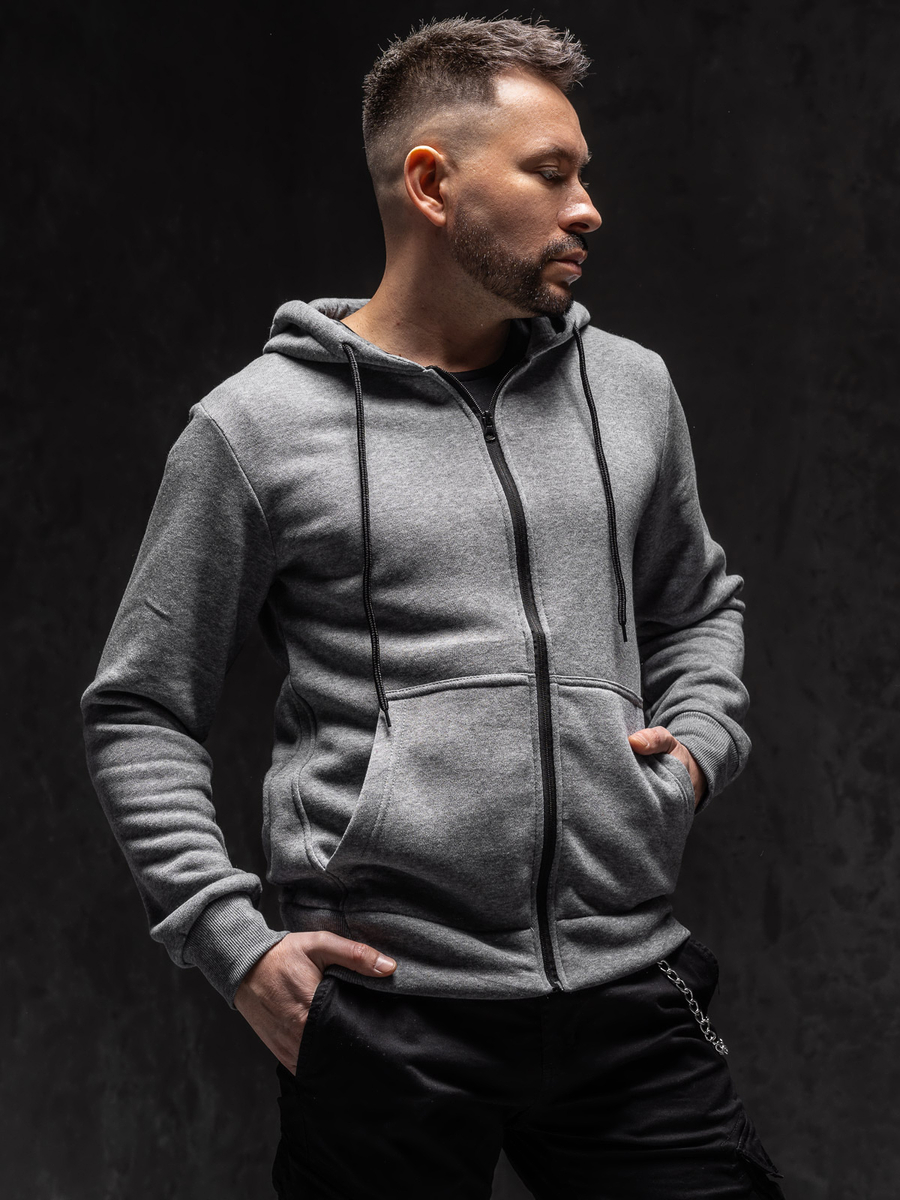 Тъмносив мъжки суичър с цип и качулка Bolf HW2787A1 е задължителна част от мъжкия гардероб. Суичърът се закопчава с цип, има стояща яка и качулка. Благодарение на ръкавите с маншети, суичърът стои идеално на всяка фигура. Двастранични джоба му придават практичен характер. Най-висококачествените материали, 65% памук и 35% полиестер, ще ви осигурят комфорт всеки ден. Перфектно в комбинация с спортни панталони, създаване на спортен екип. Съчетайте го с тениска, джогинг и кожено яке и ще получите вечен външен вид.