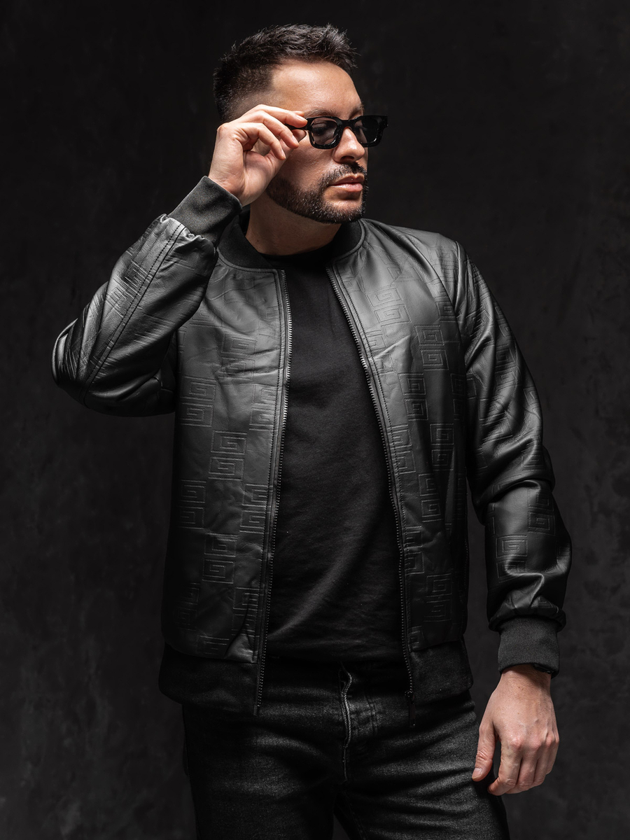 Мъжкото черно кожено бомбър яке Bolf 3A65A1 е класика за есента и пролетта. Ръкавите и долният подгъв са завършени с еластична веревна лента, благодарение на което чудесно стои на фигурата и пази от студ. Този модел е с цип и има висока яка. Има два външни джоба с цип и един вътрешен без закопчаване, в които можеш безопасно да съхраняваш най-необходимите дребни предмети. Универсалността на якето позволява изключителното му използване в спортни и ежедневни тоалети. С дънки и пуловер ще създадете перфектен, небрежен външен вид.