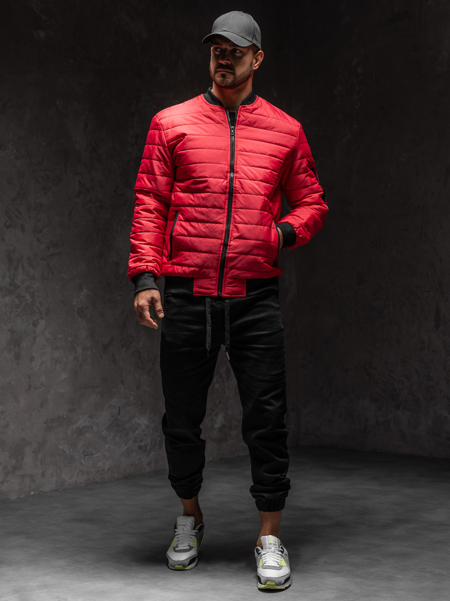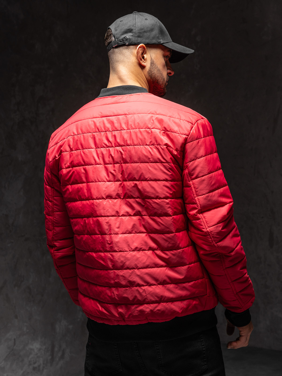 Червено преходно мъжко бомбър яке Bolf MY-02A1 е капитонирано с хоризонтални райета. Закопчава се с цип. Якето бомбър е идеално както за спортни и всекидневни, така и за улични стилизации. Има практична висока яка. Има два външни джоба с цип и един допълнителен джоб с цип на левия ръкав. Ръкавите, долната част и яката са завършени с маншет в контрастен черен цвят. Благодарение на своята изчистеност и универсалност, якето може да се носи през много сезони. Якето се вписва идеално в съвременните модни тенденциие, тъй като е изработено от приятна на допир лека и топла материя. Якето в спортен стил е подходящо за по-студените дни, в началото на пролетта и есента. Предлага се в широка гама от цветове, което ще ви позволи лесно да го комбинирате с други дрехи.