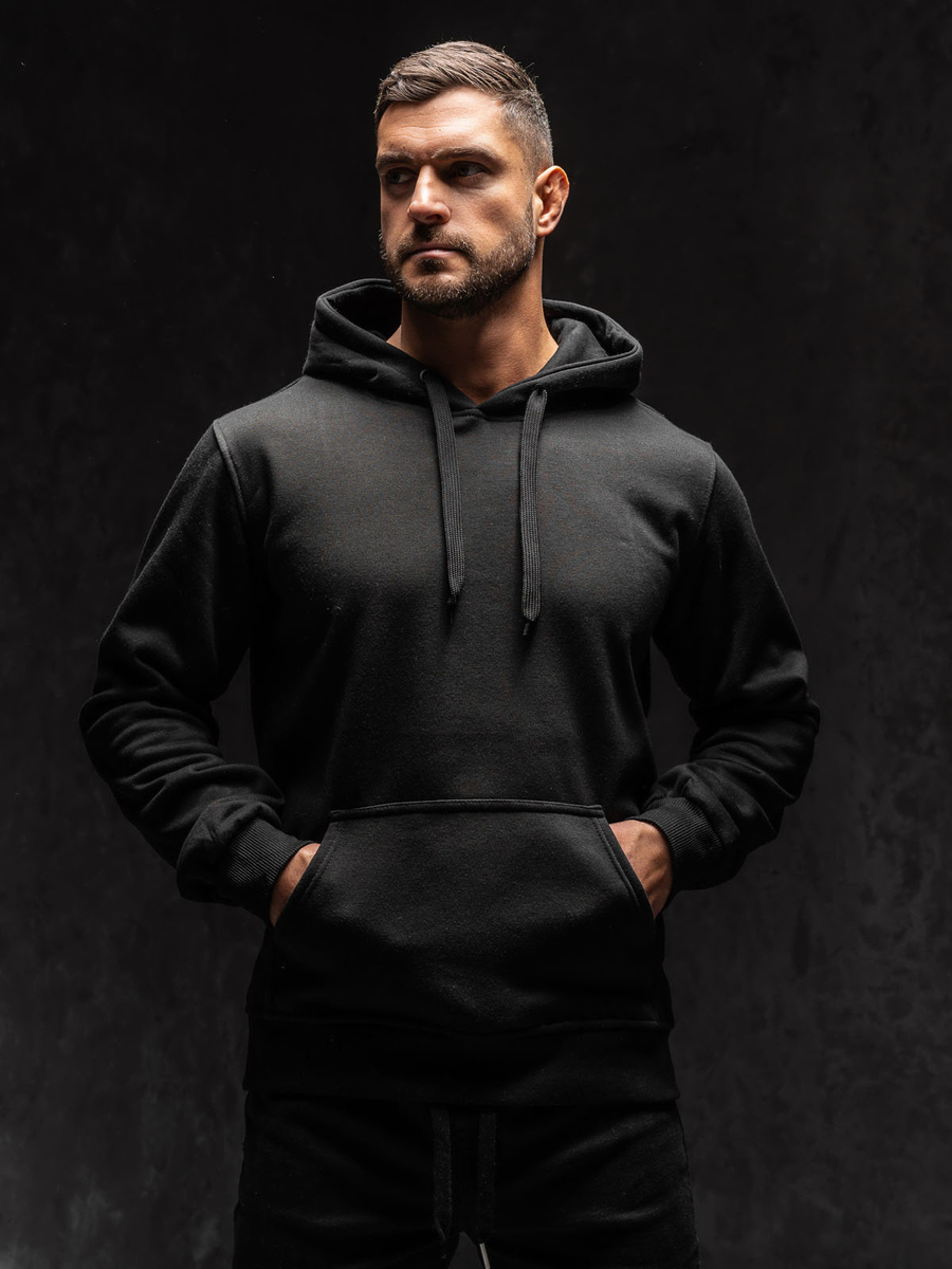 Mъжкият черен суитшърт с качулка Bolf 2009А1 се облича през главата. Има регулируема качулка и практичен джоб тип кенгуру отпред. Спортен характер му придава правата кройка и завършека с еластичен маншет. Долният подгъв и ръкавите имат маншети в същия цвят. Изработен е от мека, изчистена материя в еднороден цвят. Този модел се отличава с богати цветове, може да се намери в повече от двадесет цветови варианта, благодарение на което лесно се вписва в много тоалети. Без принт, класически, суитшърти с качулка без цип, подходящ по всяко време на годината и при почти всякакви обстоятелства. Пътуване с приятели в планината или морето? Пазаруване? Среща? Дори за спонтанна среща е подходящ суитшърт от този тип. Суитшърът с качулка е идеален за ежедневно носене, това е задължителен продукт във всеки стилен мъжки гардероб. Модерните цветове ще добавят характер към много ежедневни, улични и спортни стилове. Добре се съчетава с дънки, карго или джогър панталони. Този продукт е подходящ и за типично спортни визии, може да се съчетава със спортно долнище и преходно яке. Той е подходящ за тренировки, както на открито, така и във фитнес залата или спортната зала. Този модел често се избира от купувачите. Той има огромен кръг от фенове сред редовните клиенти на Bolf, както и нашите инфлуенсъри и Instagram звезди. Моделът привлича с отлична изработка и добра конкурентноспособна цена. Този суитшърт има своя аналог в дамска версия и също така бие рекордите по популярност.