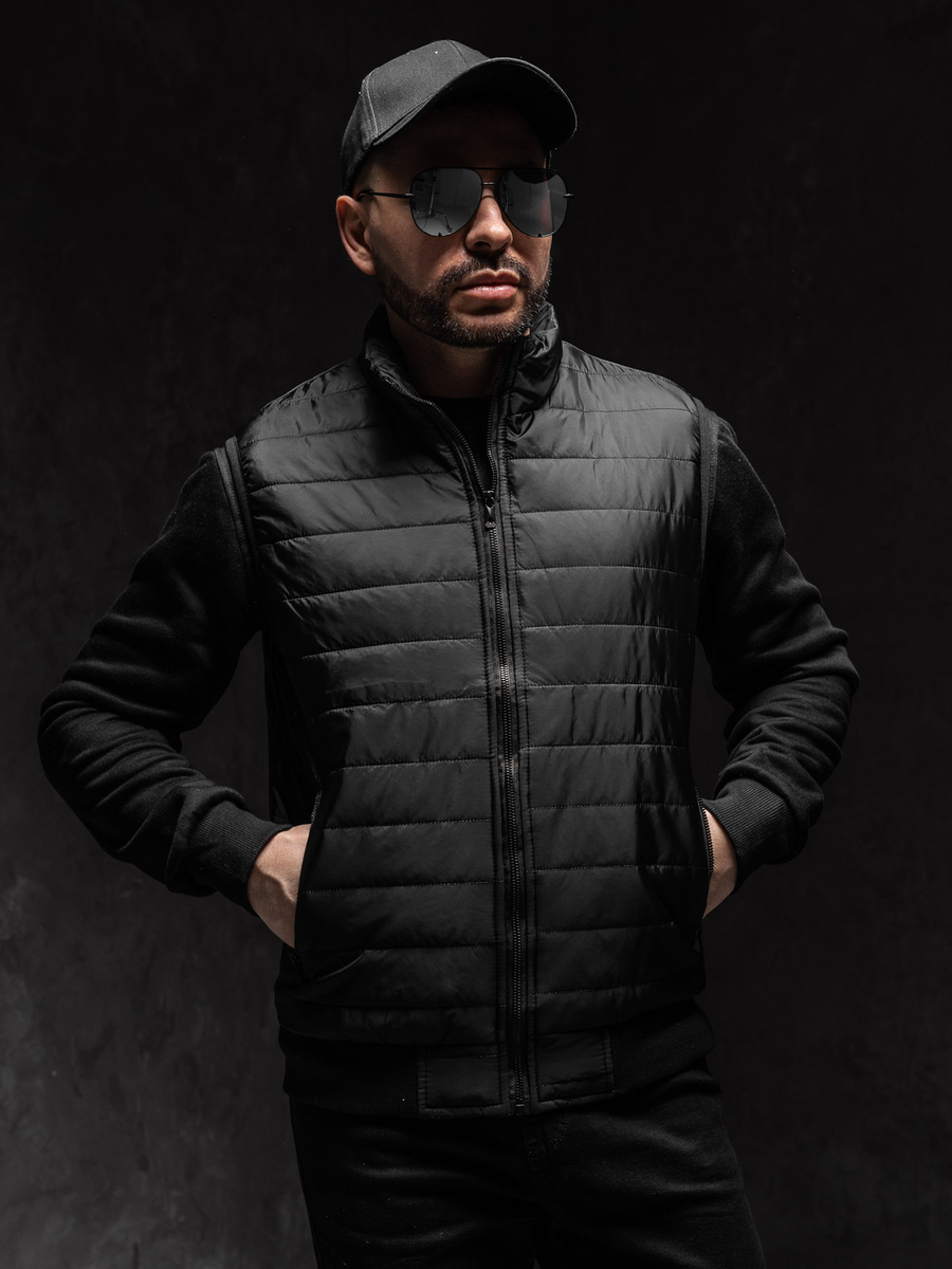 Черната ватирана мъжка жилетка Bolf MY77A1 е задължителна част от гардероба на всеки мъж в студените дни. Предлага се в седем цвята, така че имате много възможности да изберете правилния цвят за вас. Капитониран елек, закопчаван с цип. Има висока яка, която добре предпазва от вятър и студ. Жилетката разполага с два практични външни джоба с цип, където можете лесно и сигурно да съхранявате вашия телефон, портфейл и документи. Долнището на жилетката е завършено с широк, черен маншет, който позволява формата на жилетката да се адаптира към вашата фигура. Посветен, наред с други, на хора, които обичат да прекарват времето си активно на открито - можете да го използвате по време на джогинг или разходка. Комбинирайки го с блуза с дълъг ръкав и дънки, ще получиш ежедневна стилизация, подходяща за разходка в града или излизане с приятели. Перфектен ще бъде и в комбинация с суичър с цип, джогинг или карго панталони. Не забравяйте да изберете интересна тениска, която ще подчертае характера на вашия стил.