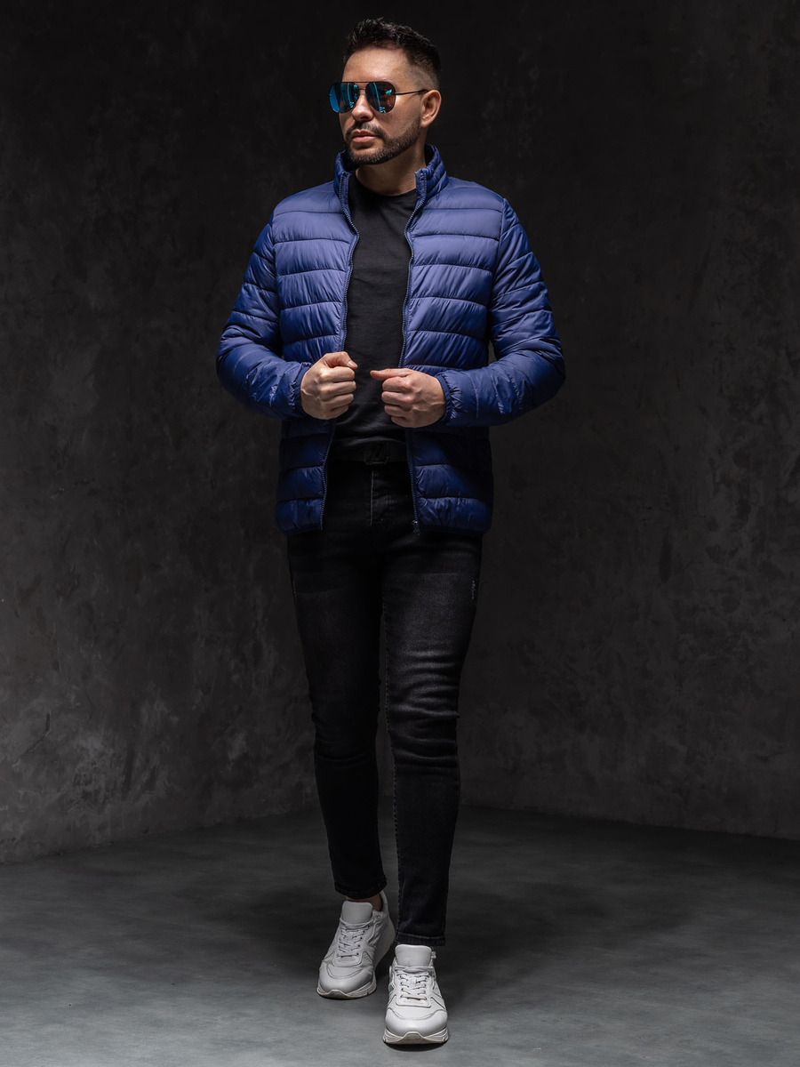Мъжкото тъмносиньо капитонирано преходно яке Bolf LY33A1 е есенно-пролетна класика. Предлага се в четири модерни и универсални цветове. Ръкавите и долният подгъв са завършени с еластична веревна лента, благодарение на което чудесно стои на фигурата и пази от студ. Този модел е с цип и има висока яка. Има два външни джоба с цип и два вътрешни, в които можеш безопасно да съхраняваш най-необходимите дребни предмети. Универсалността на якето позволява изключителното му използване в спортни и ежедневни тоалети. То ще бъде идеално за изпълнение на ежедневни задължения - като пазаруване или разходка в парка с децата. Основното му предимство е неговата лекота и комфорт при носене. Съчетай своето спортно облекло с тениска, горнище или джогъри. Също така е идеално за по-свободен стайлинг с дънки и изчистен пуловер.
