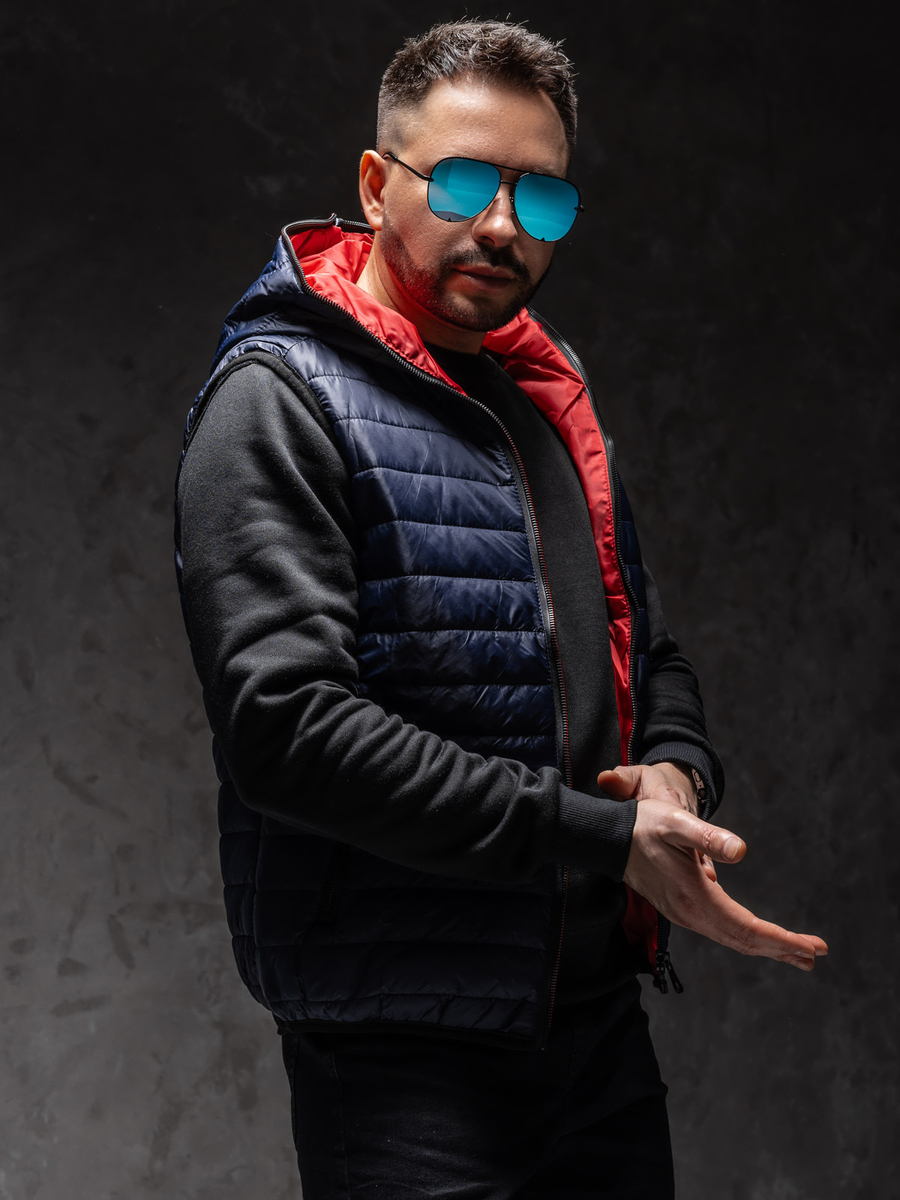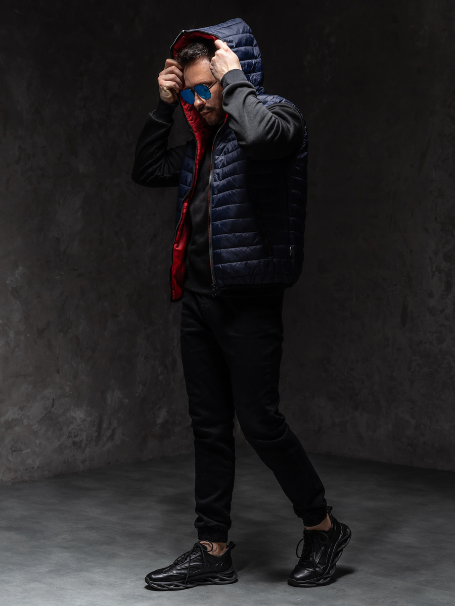 Тъмносин капитониран елек с качулка Bolf 7106А1 е идеален за създаване на спортни и градски тоалети. Този елек с класическа кройка ще бъде чудесна алтернатива на яке през есенния и пролетния сезон, осигурявайки защита от студ и вятър. Продуктът се закопчава с цип и има качулка. Двата външни джоба с цип му придават практичен характер. Има също два вътрешни джоба без закопчаване. Долният подгъв е завършен с еластична веревна лента. Изработено от 100% полиестер. Елекът може да се използва като основа за много модни стилизации, той успешно ще замени преходното яке. Ще изглежда страхотно с долнище и суичър , създавайки спортен, свободен outfit. Перфектно се съчетава също и с дънки и джогъри.