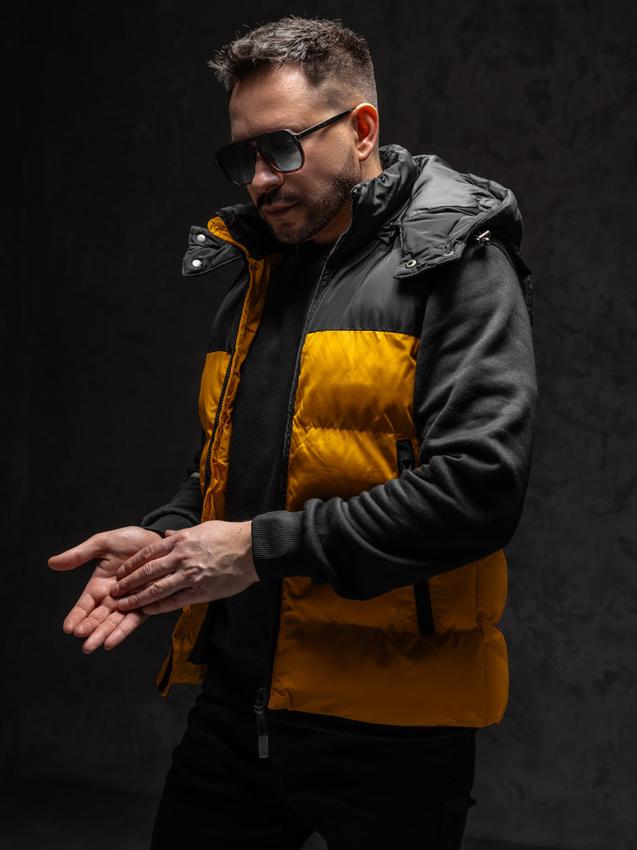 Мъжкият ватиран елек с качулка в цвят камел Bolf 1189A1 е капитониран продукт. Елекът включва подвижна качулка, която предпазва от намокряне в дъждовни дни. Закопчава се с удобен цип. Има висока яка. Голямо предимство на продукта са трите джоба с цип. Двата големи външни джоба могат да служат като защита на ръцете ви от замръзване в студените дни. Вътрешният джоб е идеален за съхранение на ключове, телефон, документи или други дребни вещи. Качулката има връзки, които позволяват регулиране. Това го прави отлична защита срещу студ и дъжд.Елекът е предназначен за всеки активен мъж, който държи на спортния стил. Продуктът ще бъде идеален за неблагоприятни климатични условия. Той ще бъде идеален за стопляне по време на пътувания през уикенда, дълги вечерни разходки или джогинг в гората или парка. Ще се чувствате много комфортно по време на туризъм или дълго, взискателно тичане. Еластичността на материала прави продукта идеален за лоши условия и висока физическа активност. А елегантната кройка ще ви накара да изглеждате стилни и модерни по време на събиране с приятелите или семейството през уикенда. Продуктът се предлага в няколко други цвята, така че можете да комбинирате елекът с много тоалети и стилове. Изглежда страхотно в комбинация с дънки, джогъри или блуза с дълги ръкави. Можете също така да я комбинирате с риза или пуловер. Този продукт трябва да присъства в гардероба на всеки мъж, благодарение на своята универсалност. Той може да се използва в много случаи, както спортни, така и социални. Жилетката е изработена от 100% полиестер, който ще осигури комфорт при ежедневна употреба на продукта. Отличното съотношение цена-качество прави елекът чудесен подарък за рожден ден или друг празник. Ще задоволи и най-взискателните мъже.