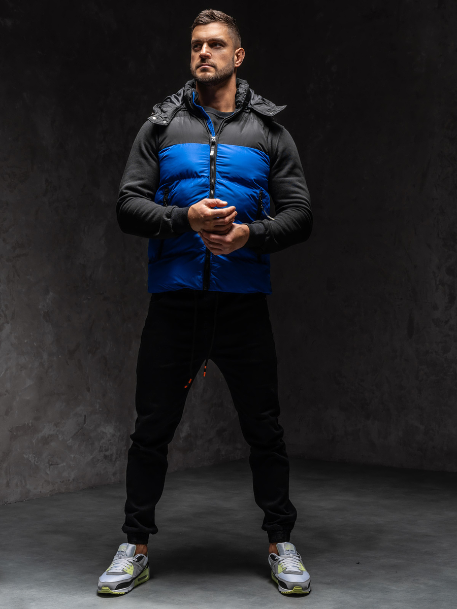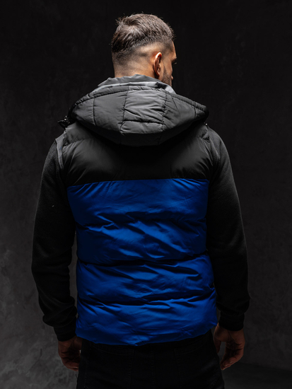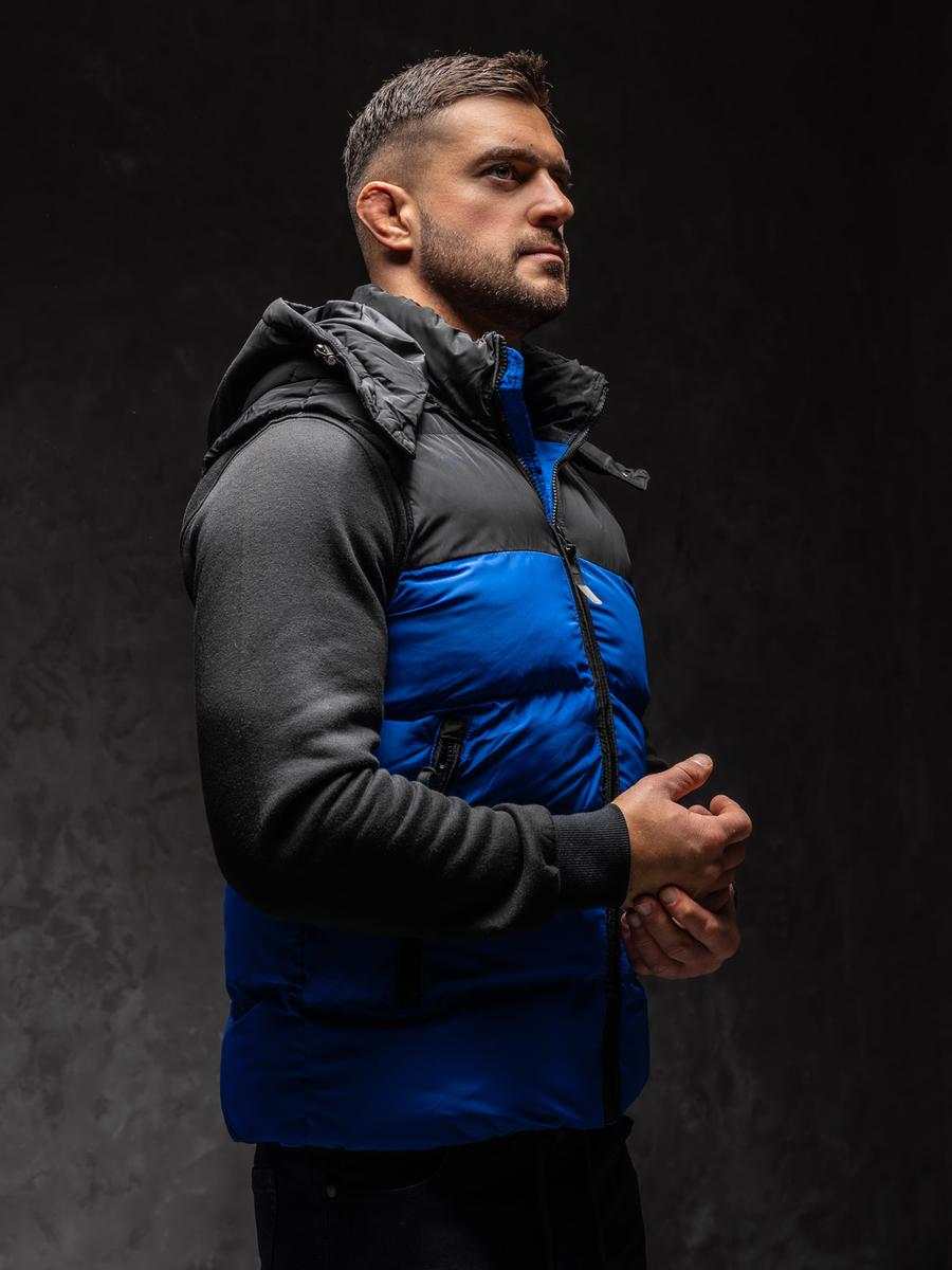 Мъжкият син ватиран елек с качулка Bolf 1189A1 е капитониран продукт. Елекът включва подвижна качулка, която предпазва от намокряне в дъждовни дни. Закопчава се с удобен цип. Има висока яка. Голямо предимство на продукта са трите джоба с цип. Двата големи външни джоба могат да служат като защита на ръцете ви от замръзване в студените дни. Вътрешният джоб е идеален за съхранение на ключове, телефон, документи или други дребни вещи. Качулката има връзки, които позволяват регулиране. Това го прави отлична защита срещу студ и дъжд.Елекът е предназначен за всеки активен мъж, който държи на спортния стил. Продуктът ще бъде идеален за неблагоприятни климатични условия. Той ще бъде идеален за стопляне по време на пътувания през уикенда, дълги вечерни разходки или джогинг в гората или парка. Ще се чувствате много комфортно по време на туризъм или дълго, взискателно тичане. Еластичността на материала прави продукта идеален за лоши условия и висока физическа активност. А елегантната кройка ще ви накара да изглеждате стилни и модерни по време на събиране с приятелите или семейството през уикенда. Продуктът се предлага в няколко други цвята, така че можете да комбинирате елекът с много тоалети и стилове. Изглежда страхотно в комбинация с дънки, джогъри или блуза с дълги ръкави. Можете също така да я комбинирате с риза или пуловер. Този продукт трябва да присъства в гардероба на всеки мъж, благодарение на своята универсалност. Той може да се използва в много случаи, както спортни, така и социални. Жилетката е изработена от 100% полиестер, който ще осигури комфорт при ежедневна употреба на продукта. Отличното съотношение цена-качество прави елекът чудесен подарък за рожден ден или друг празник. Ще задоволи и най-взискателните мъже.