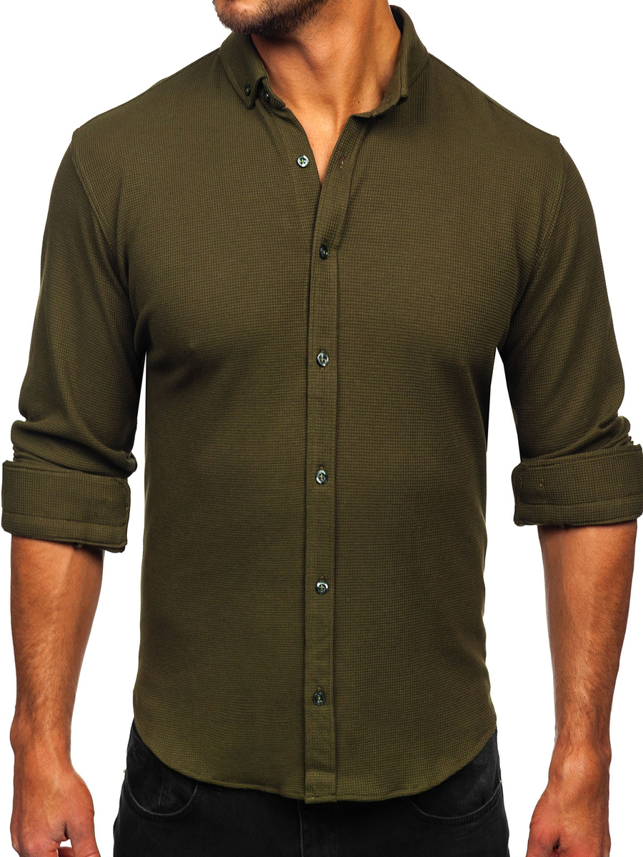 Отзиви и мнения на потребители за Мъжка риза с дълъг ръкав в цвят каки Bolf 506