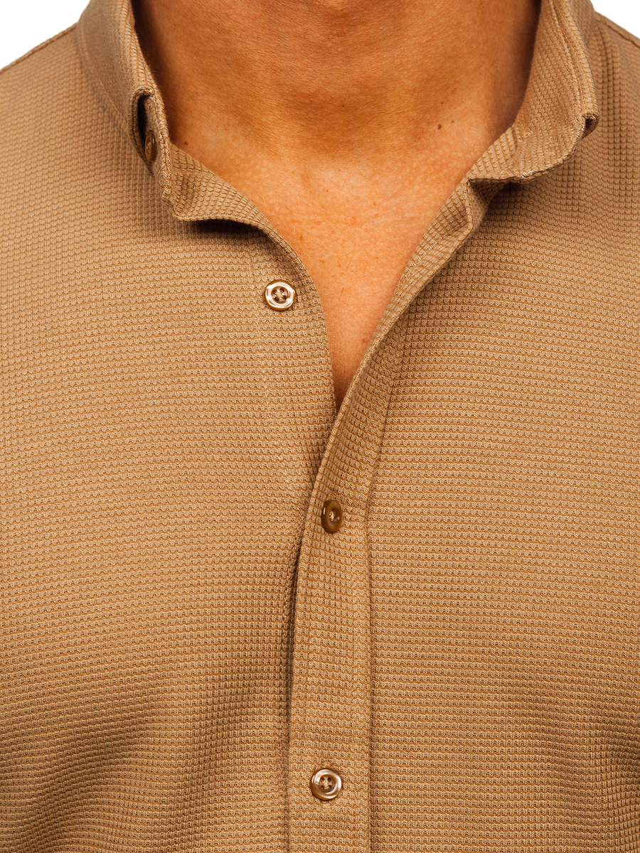 Отзиви и мнения на потребители за Кафява мъжка муселинена риза с дълъг ръкав Bolf 506
