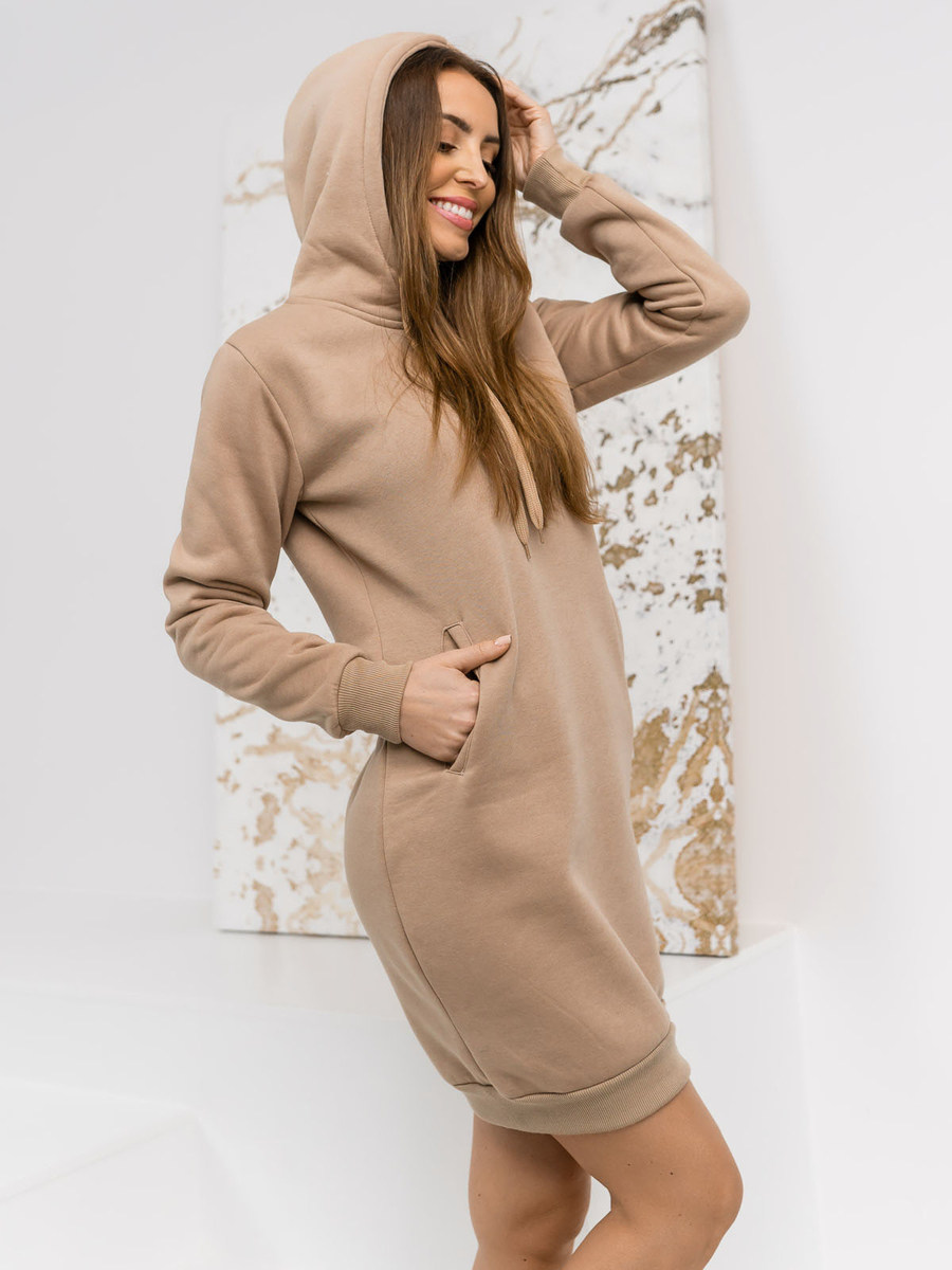 Бежов дълъг дамски суичър с качулка Bolf YS10005A1