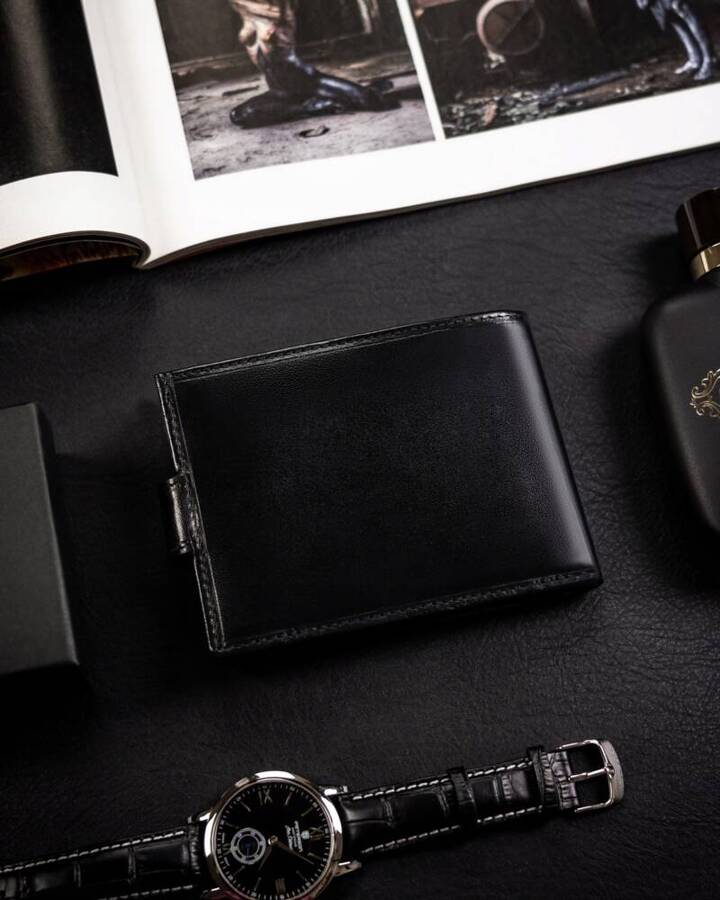 - Класически дизайн | Портфейл в пейзажна ориентация с външно затваряне. Черен цвят и семпъл дизайн без излишни декорации;
