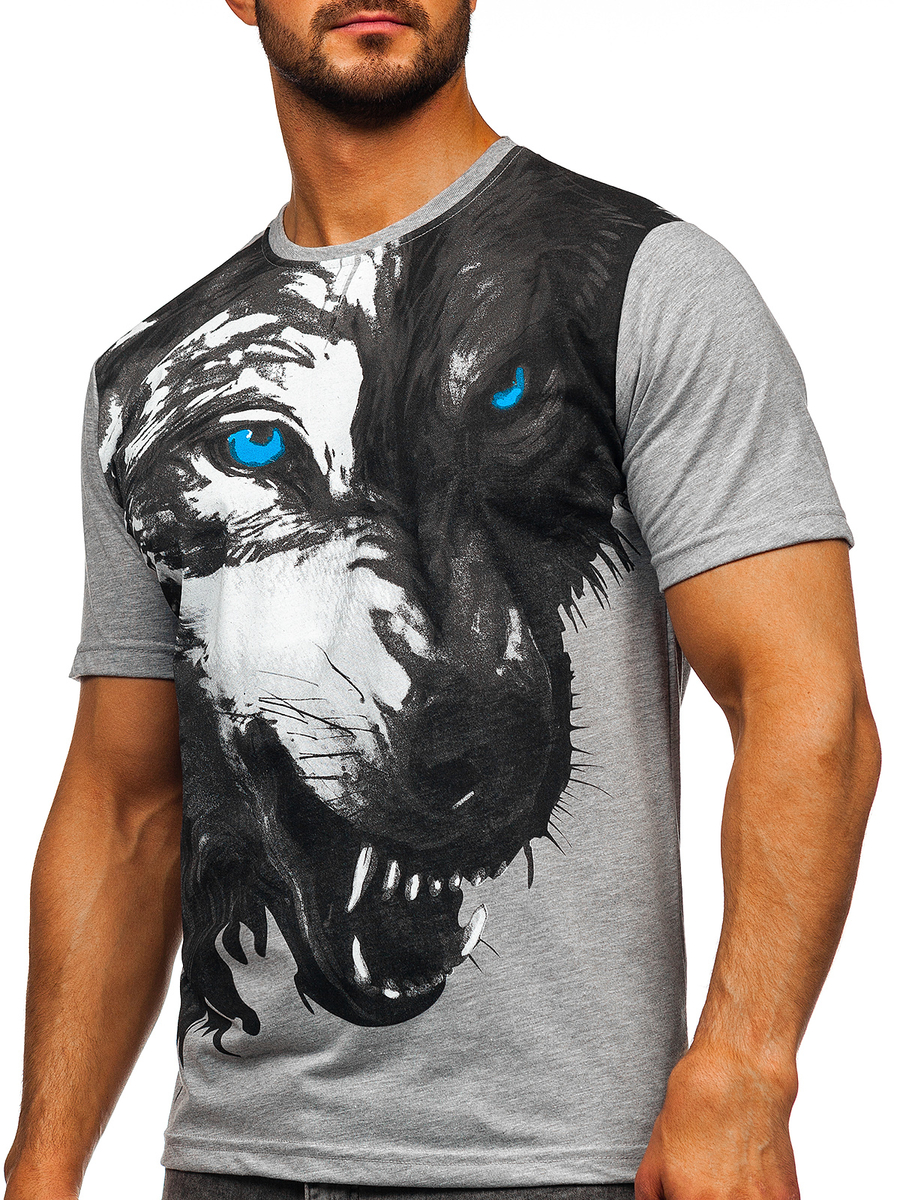 Отзиви и мнения на потребители за Сива мъжка памучна тениска с щампа Bolf 5041