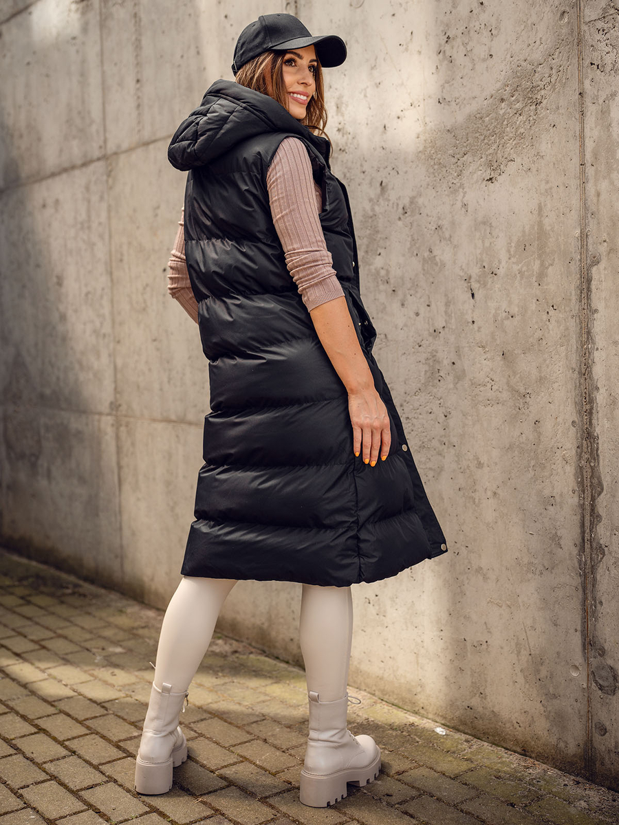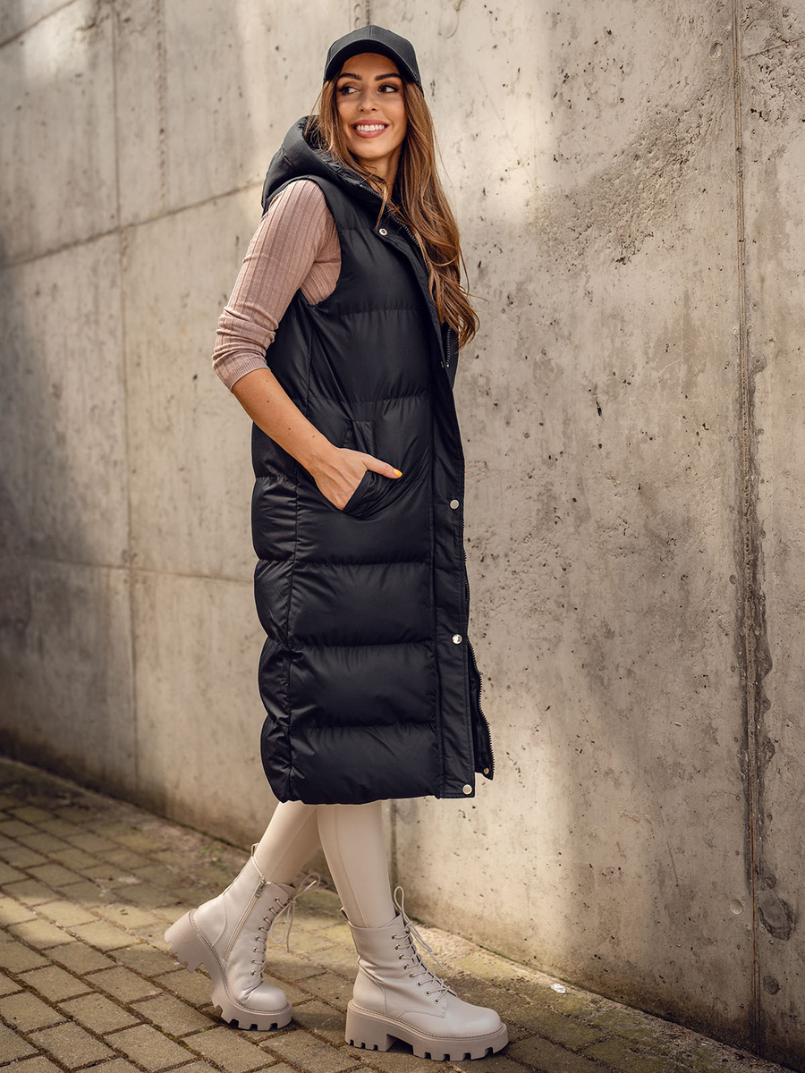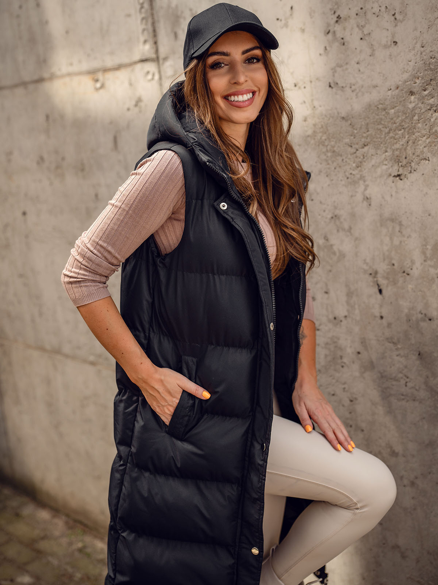 Отзиви и мнения на потребители за Черен дълъг ватиран дамски елек Bolf 5M728A