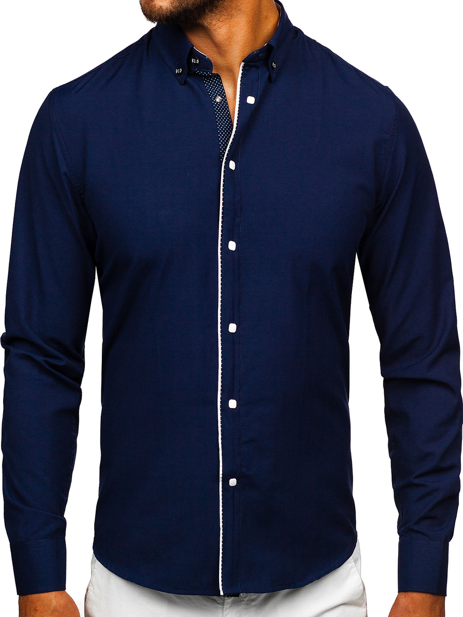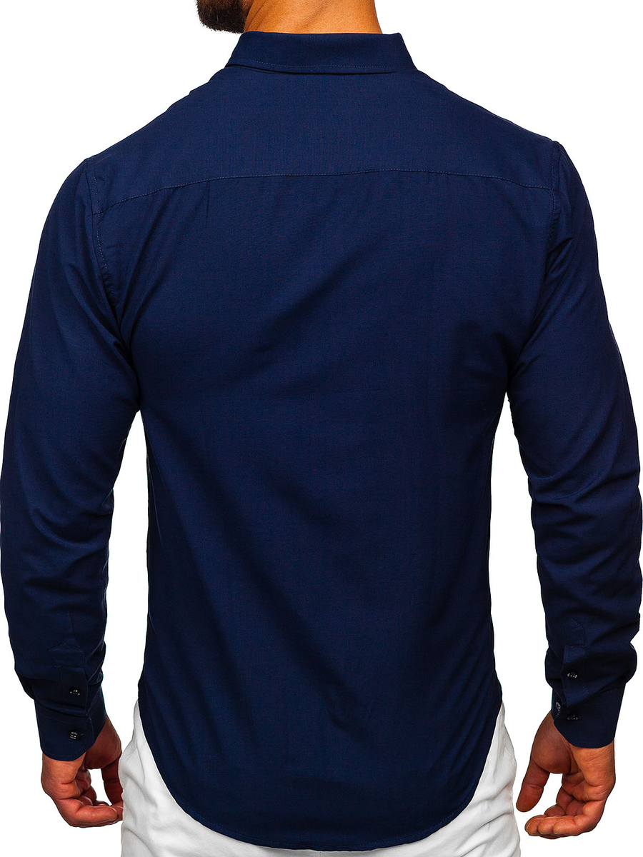 Тъмносиня мъжка елегантна риза с дълъг ръкав Bolf 17724