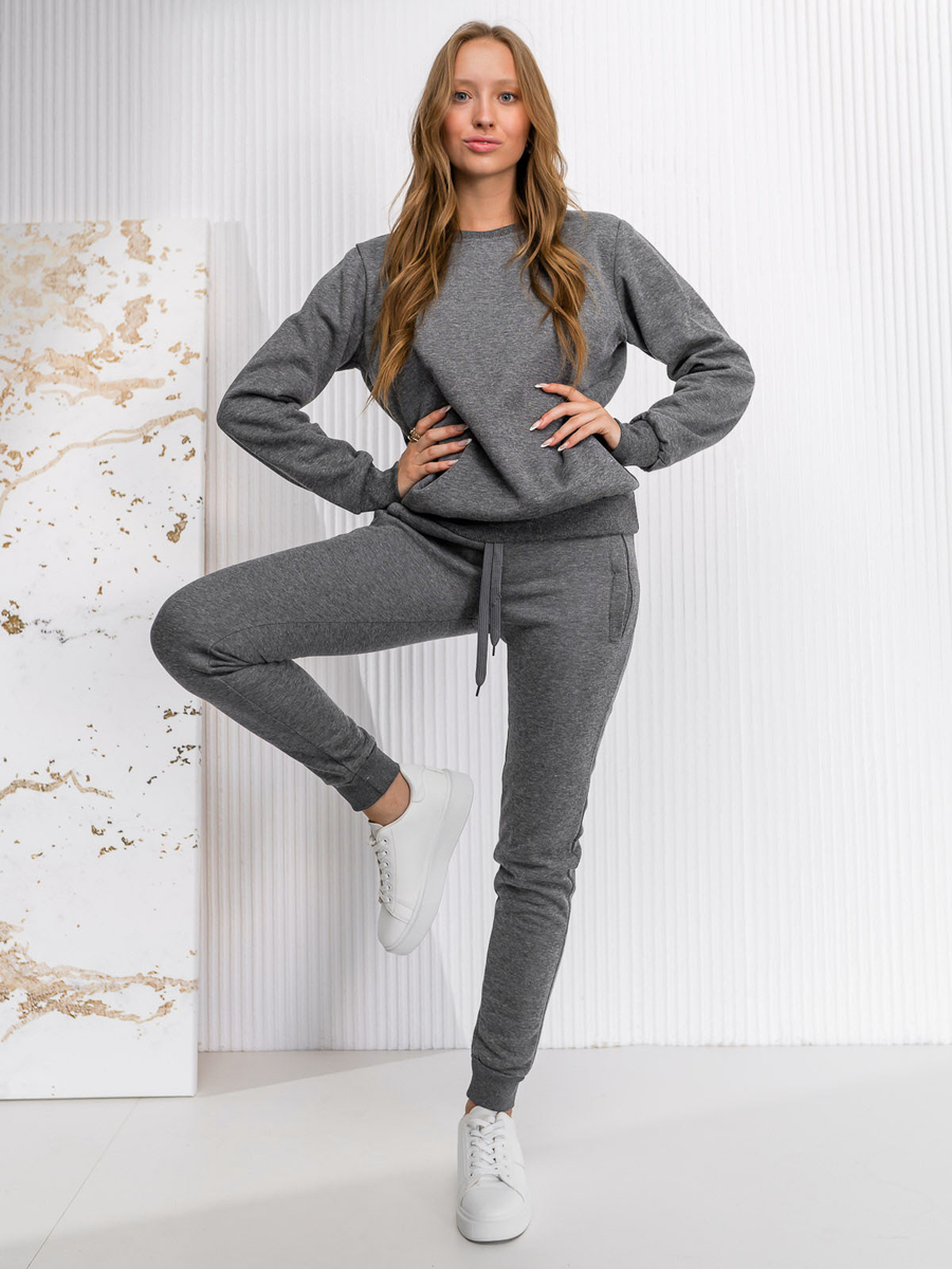 Графитният дамски анцуг на Bolf 0001A1 се състои от суичър и анцуг. Предлага се в няколко цветови версии, което ви позволява да изберете цвят, който да подхожда на мечтания стайлинг. Долнището и ръкавите на суичъра са завършени с маншет, който естетически подчертава дизайна на продукта. Благодарение на регулирането на талията с ластик и връзки, стоят идеално на фигурата. Има два външни джоба. Крачолите завършват с маншет. Basic стил на якето позволява да се използва при много обстоятелства. Идеален е за планински излети и дейности на открито. Комплект, посветени на хората, които ценят активния начин на живот. Много качествена материя, съставена от 65% памук и 35% полиестер, ще ви осигури комфорт и удобство при носене. Създайте своята спортна визия като съчетаете комплекта със спортно яке. Също така ще работи чудесно с дънково яке.