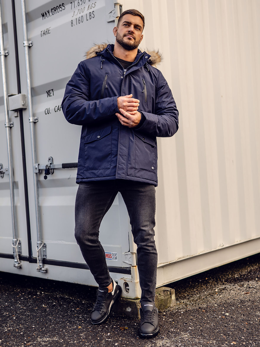 Мастиленото мъжко зимно яке Alaskan parka от Bolf WX032DA е идеално за зимния сезон.Закопчава се класически с цип и копчета. Има изправена яка и подвижна, регулируема качулка, която ще ви предпази от вятър и дъжд. Уникален декоративен елемент е свалящата се кожа на качулката и логото на ръкава. Вталената и семпла кройка кара всеки да изглежда изключително добре с него. Якето има практични джобове на гърдите, закопчаващи се с цип, и външни джобове, покрити с капак, закопчаващ се с копче. Вътрешен джоб с цип. Продуктът е изработен от висококачествена материя, което го прави приятен на допир и изключително удобен. Състои се от 100% полиестер.Благодарение на своята универсалност, продуктът може да се комбинира с много стилове. Ще създаде перфектна комбинация с дънки и дълъг ръкав.