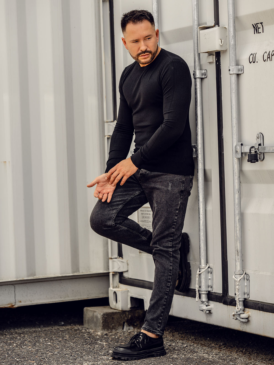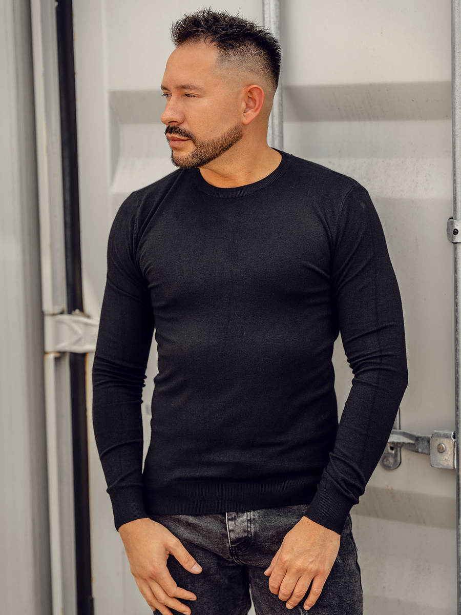 Черният мъжки пуловер Bolf MMB602A е перфектният елемент от есенния или зимния стайлинг. Предлага се в няколко изключителни цветови варианта. Долният подгъв и ръкавите са завършени с щрик, благодарение на което чудесно стои на фигурата. Пуловерът ще бъде идеален за по-студените дни. Облечи го на работа, по време на пазаруване или разходка. Вечният стил на продукта ви позволява да създавате много модерни стайлинги с него. С ежедневния пуловер ще създадеш визия за всеки повод. Облечи T-shirt, дънки, палто и се радвай на мега модерна визия!