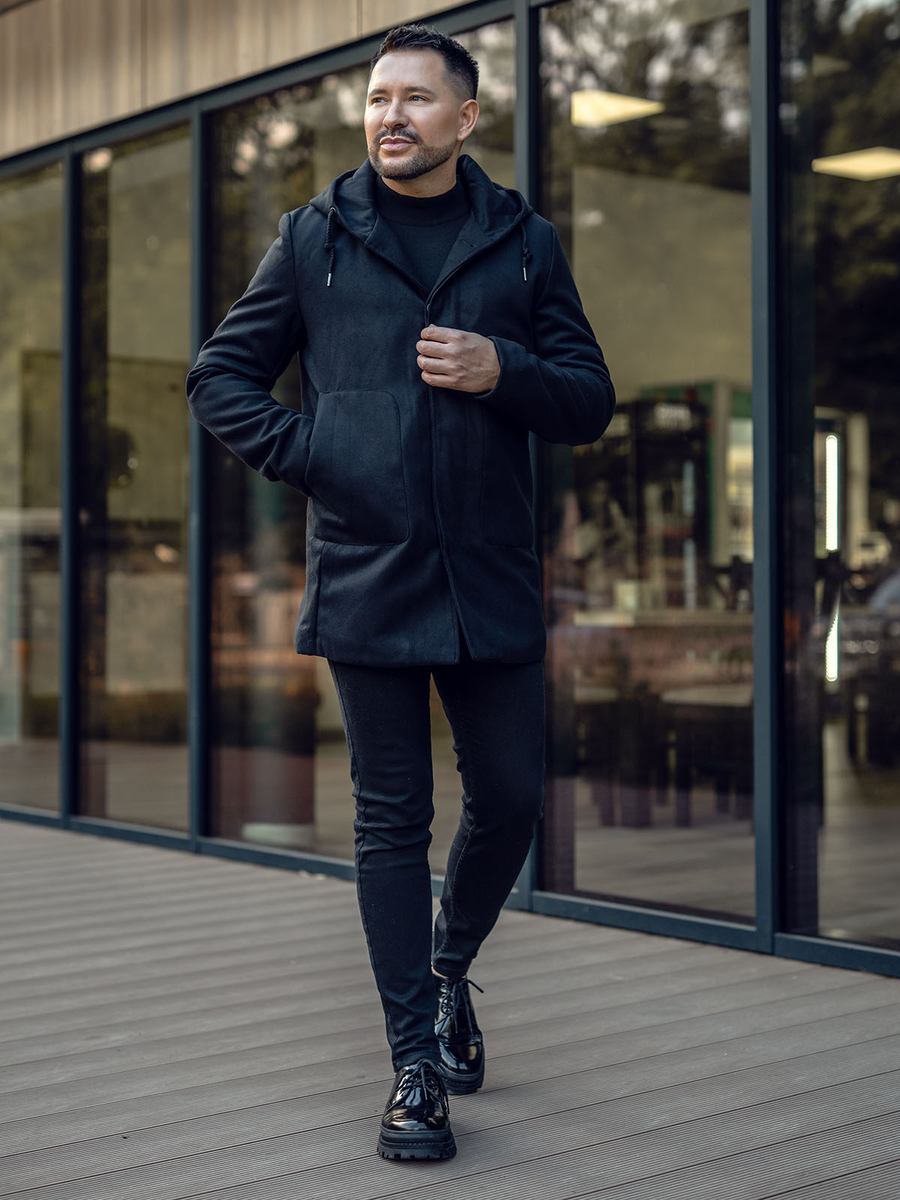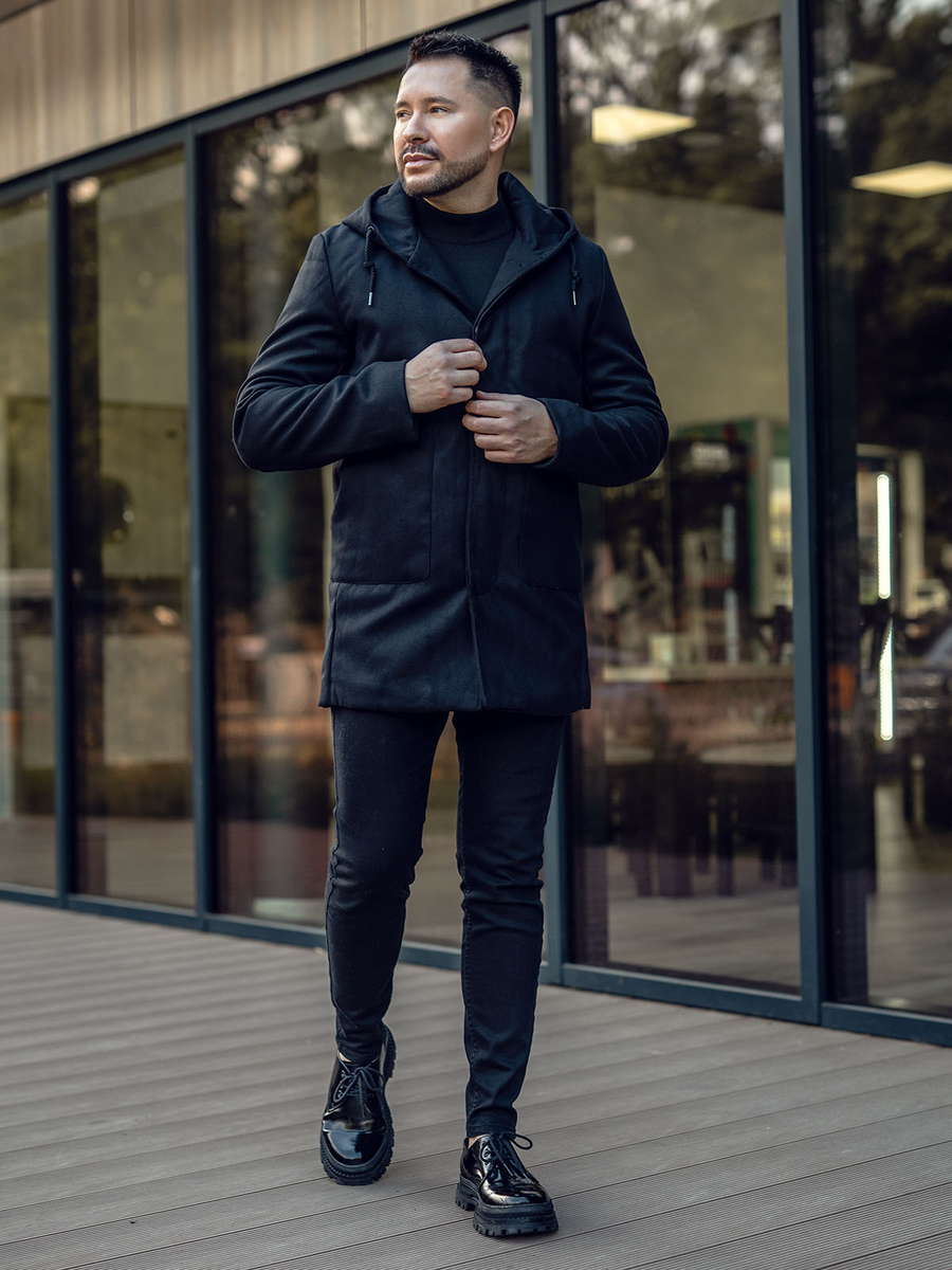 Черно мъжко зимно палто с качулка Bolf 79B3A-197 е универсално палто, което идеално ще се впише в гардероба на елегантен и модерен мъж. Това е класическо палто с копчета. Регулируемата с шнур качулка добавя характер. Има два външни джоба и един вътрешен джоб.Палтото изглежда страхотно както закопчано, така и разкопчано. Изработена е от висококачествена материя. Той е много оригинален, но също така има вечна елегантност. Идеално ще се съчетае с чино, риза и сако като по-официално облекло. Съчетайте го с дънки и пуловер и ще получите визия за ежедневни излизания.