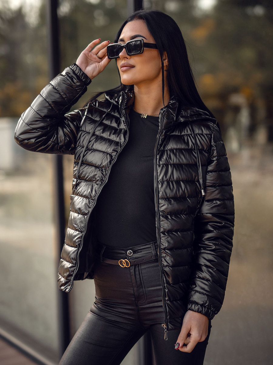 Дамско ватирано преходно яке с качулка черно Bolf 16M9106