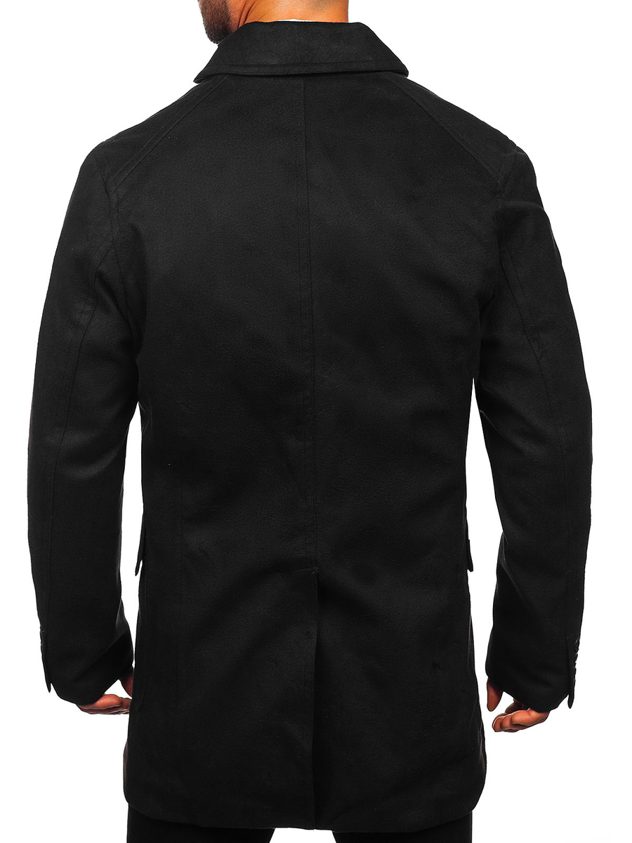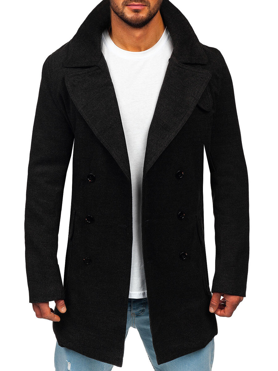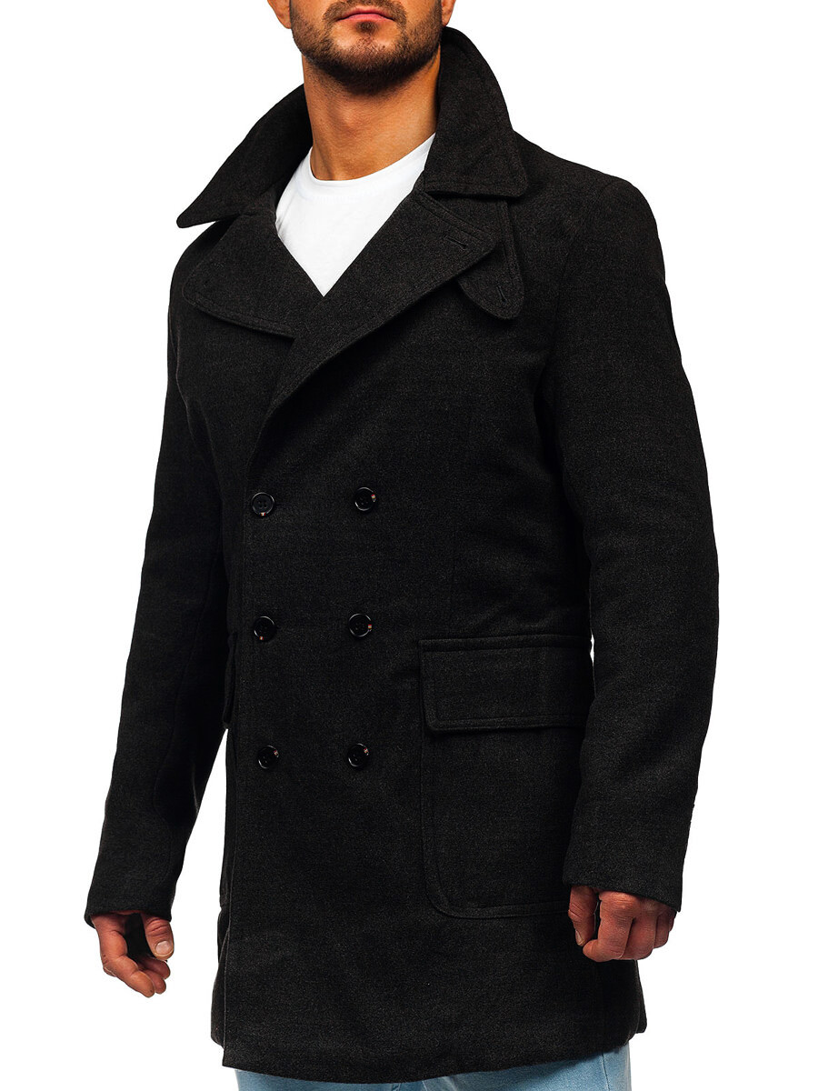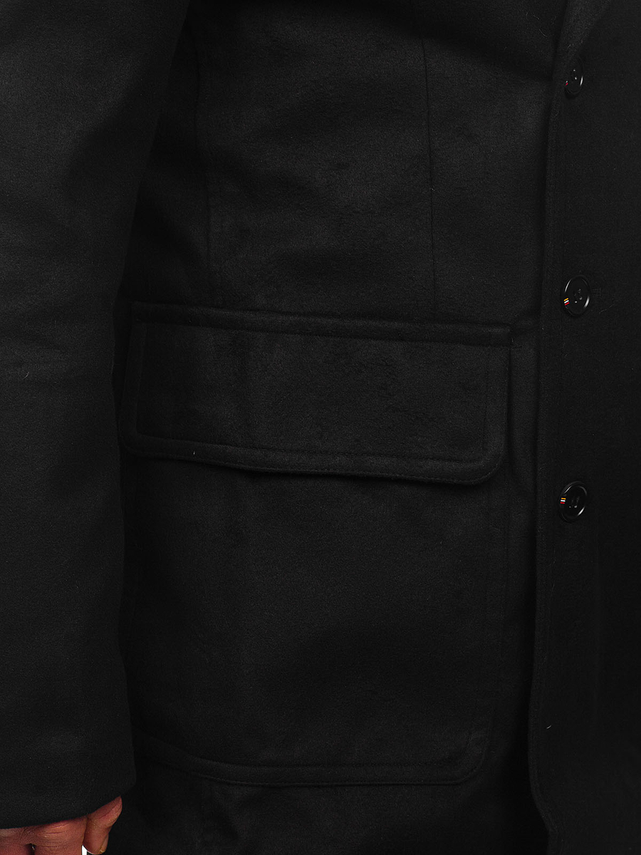 Черното мъжко зимно палто Bolf 1048A е изработено от изолирана материя, идеално за зимата. Закопчава се с копчета, а двуредното закопчаване придава шик и елегантност. Разполага с два външни джоба, закопчаващи се с копчета и покрити с модерен капак и един вътрешен джоб, закопчан с копче. Вталеното палто стои идеално на атлетична мъжка фигура. Обърната яка, допълнително закопчаване с копче. Вечният черен цвят ще работи перфектно както в по-приглушени, така и в по-смели цветови стилове.Палтото има официален характер, но също така ще бъде идеално за ежедневен стайлинг, за разходка, пътуване с приятели, дори среща или бизнес среща. Ще изглежда чудесно в комбинация с дънки, панталони чино или пуловер, блуза с дълъг ръкав или риза.