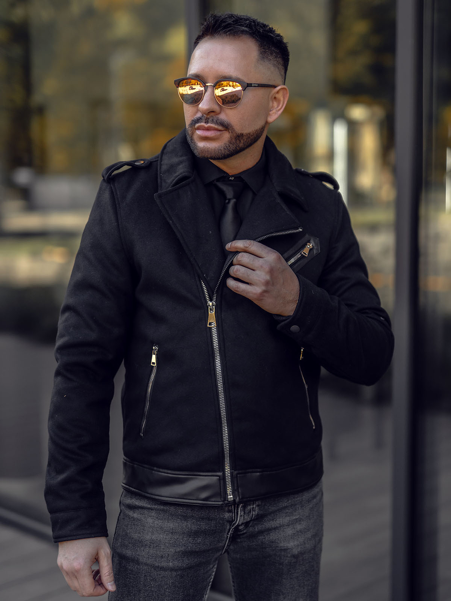 Черното мъжко зимно моторско яке 79M15501A е с класическа права кройка. Закопчава се с цип, има обратна яка.Еполетите на раменете му придават уникален характер. Има три външни джоба с цип и един вътрешен джоб без цип. Регулируемите ръкави с копчета и права долна част идеално прилягат на мотоциклетното яке към фигурата. Небрежният стил на якето ви позволява да създавате много интересни стилове. Перфектен за по-студените дни. За среща с приятели съчетайте якето с суичър и дънки. Съчетавайки якето с пуловер или джогъри, ще получите перфектния тоалет за по-хладните дни.