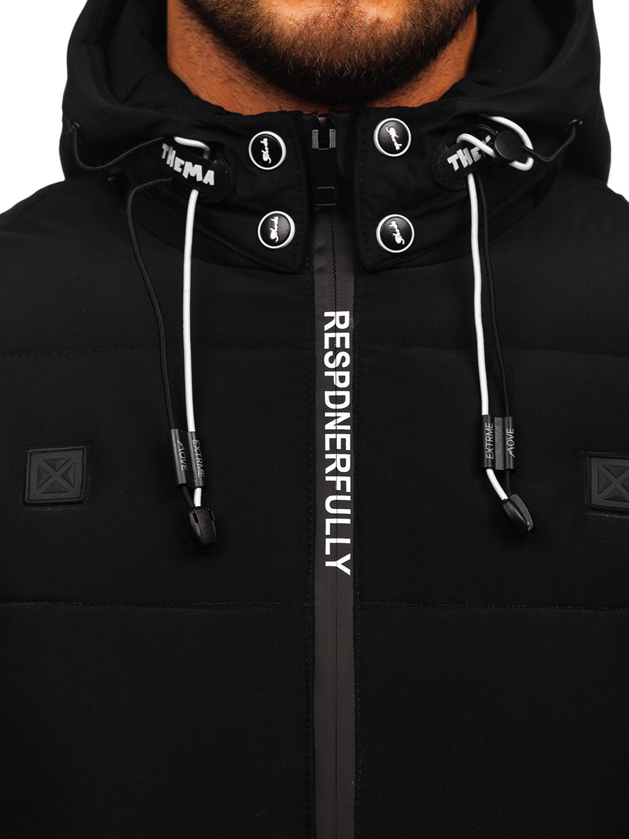 Черно ватирано мъжко зимно яке Bolf 57M7502