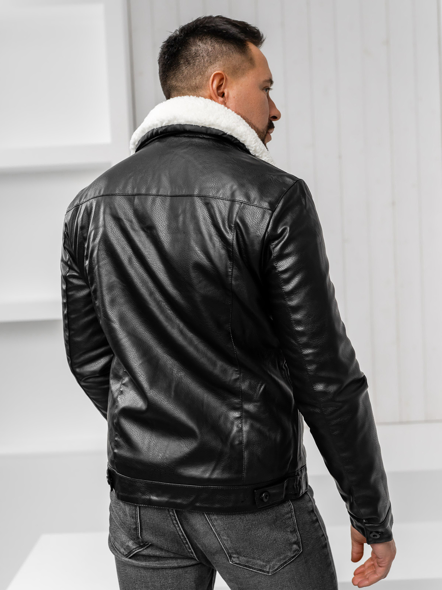 Черно кожено мъжко зимно пилотско яке Bolf 8830
