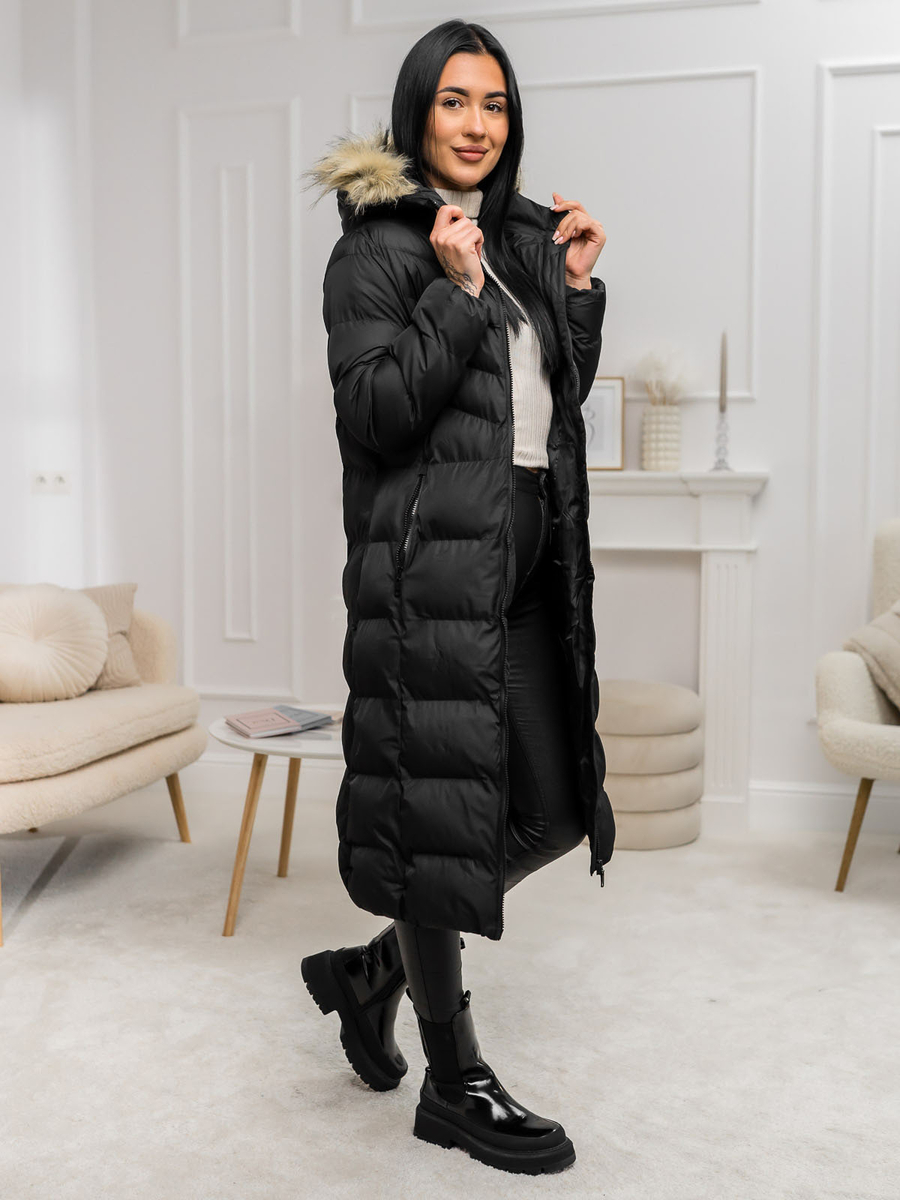 Черно дълго ватирано яке, дамско зимно палто с качулка Bolf 5M3228