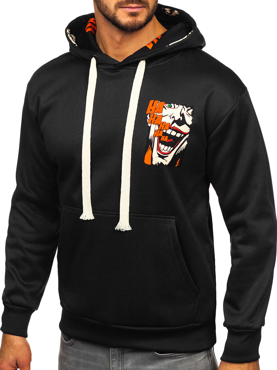 Отзиви и мнения на потребители за Черен мъжки суичър кенгуру с щампа Bolf M286