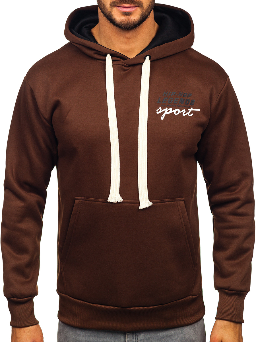 Отзиви и мнения на потребители за Кафяв мъжки суичър кенгуру с щампа Bolf M280