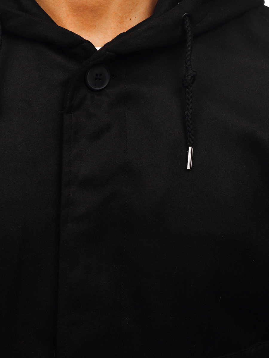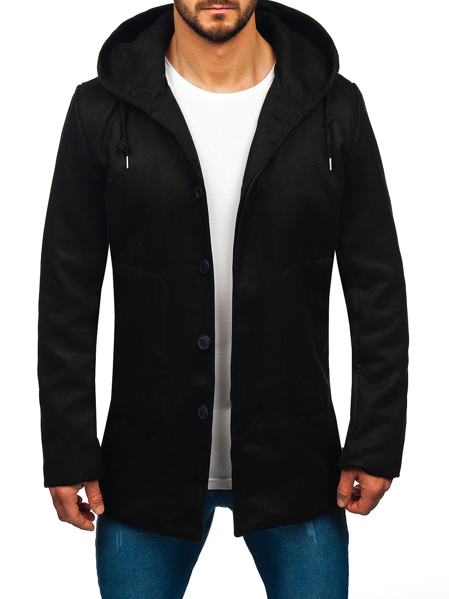 Черно мъжко зимно палто с качулка Bolf 79B3A1-197 е универсално палто, което идеално ще се впише в гардероба на елегантен и модерен мъж. Това е класическо палто с копчета. Регулируемата с шнур качулка добавя характер. Има два външни джоба и един вътрешен джоб.Палтото изглежда страхотно както закопчано, така и разкопчано. Изработена е от висококачествена материя. Той е много оригинален, но също така има вечна елегантност. Идеално ще се съчетае с чино, риза и сако като по-официално облекло. Съчетайте го с дънки и пуловер и ще получите визия за ежедневни излизания.