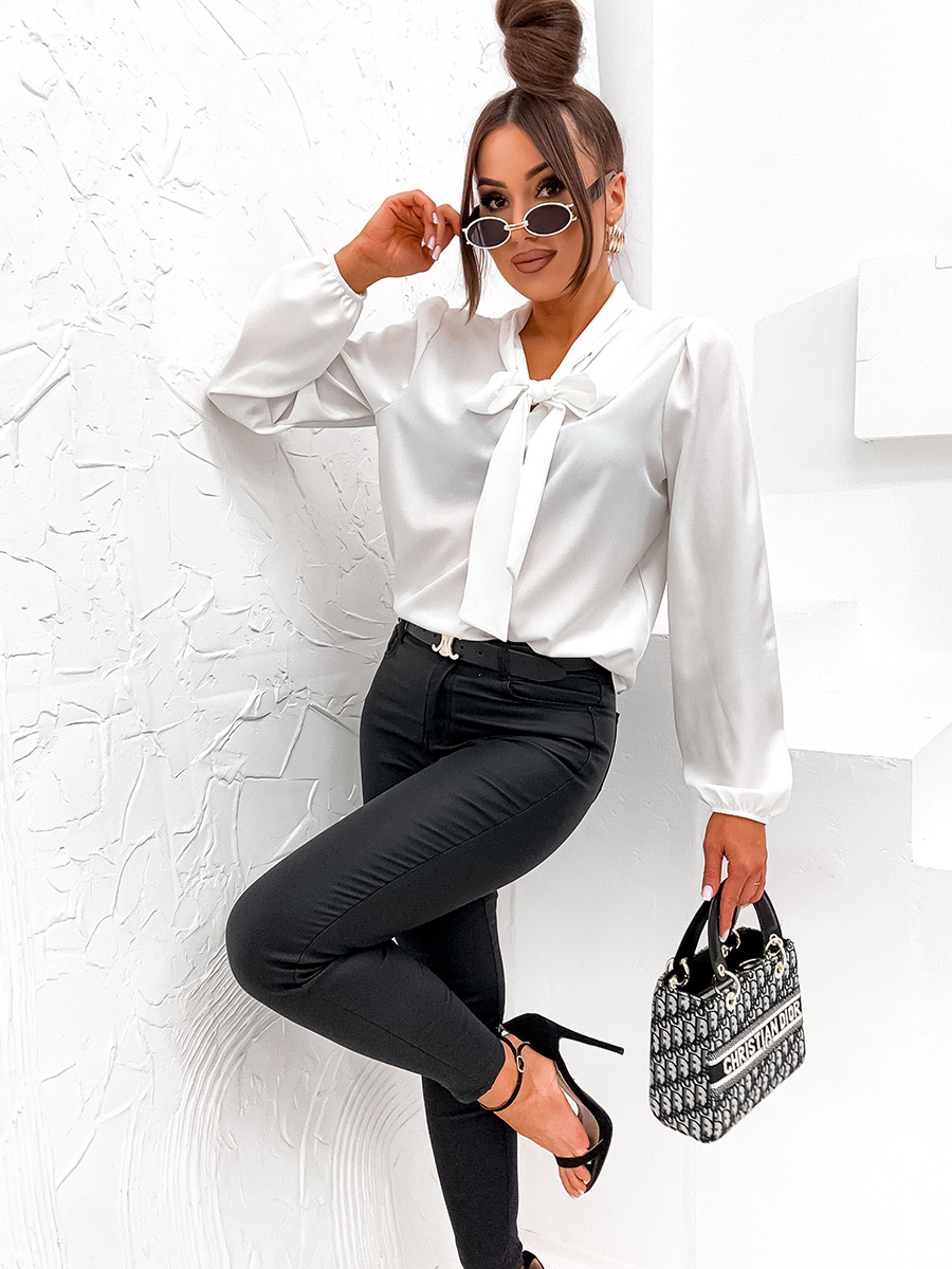 Отзиви и мнения на потребители за Бяла елегантна дамска блуза с дълъг ръкав и панделка Bolf 500